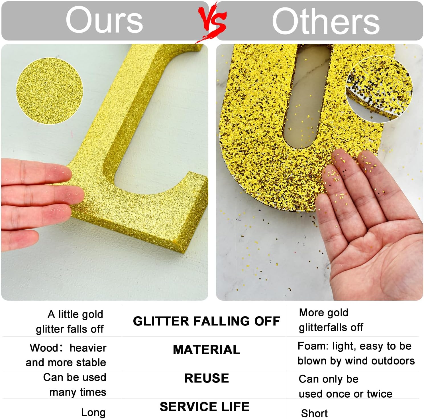 - HIGH QUALITY: The item uses high-quality wood and glitter powder, and the texture is great. Compared with other item, the phenomenon of powder falling off is relatively minor. It won't ruin your party