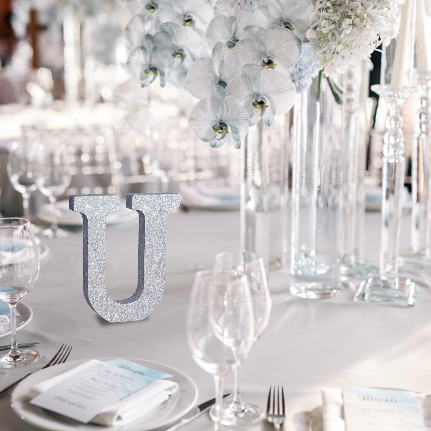 TONIFUL 8 Inch Silver Glitter Letter U Table Centerpiece A-Z Silver Birthday Party Decorations,Silver Alphabet U for Birthday,Chrismas,Graduation,Bridal Shower,Wedding,Anniversary Party Supplies