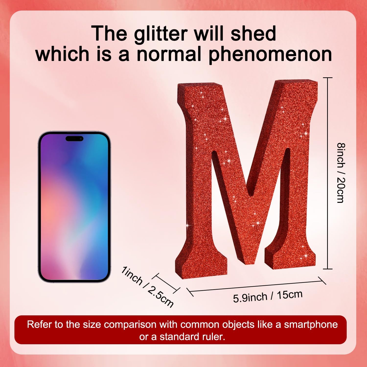 - ITEM INFORMATION AND SIZE: 1 Pcs * M Red Glitter Letter Ornament. Size: 8 * 5.8 * 1 Inches (20*15*2.5 CM). Before purchasing, Please check the size carefully to make sure it meets your needs