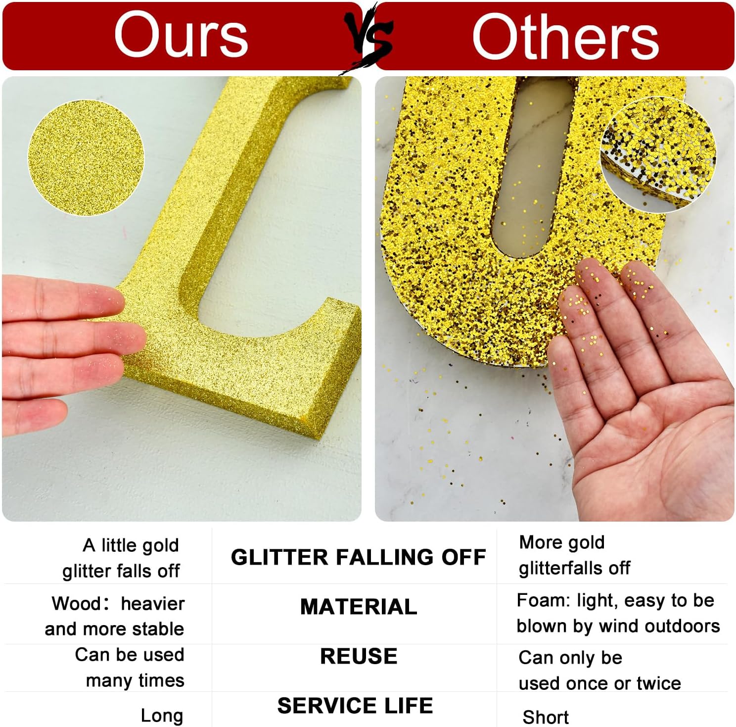- HIGH QUALITY: The item uses high-quality wood and glitter powder, and the texture is great. Compared with other item, the phenomenon of powder falling off is relatively minor. It won't ruin your party
