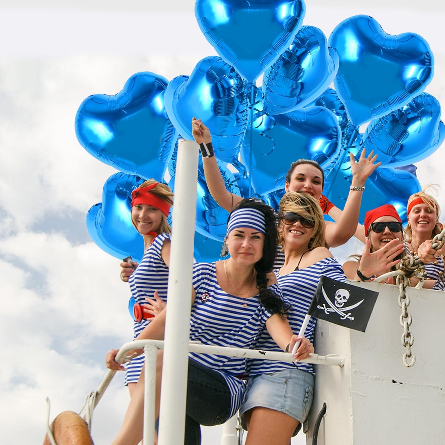 TONIFUL 30Pcs 18 Inch Blue Heart Balloons Blue Heart Shape Foil Mylar Balloons Decoration for Birthday Valentine's Day Wedding Bridal Shower Anniversary Engagement Party Supplies