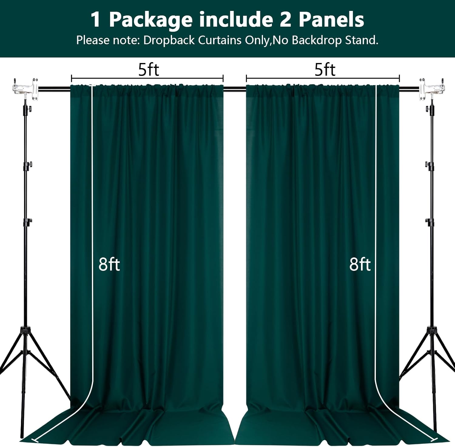 - DIMENSIONS: Each order is for 2 (two) polyester curtains. Each curtain measures 5 feet wide x 8 feet high. Entire backdrop measures 10 feet wide x 8 feet high.Each curtain panel comes with 4 inch rod pocket on top, fit up to any standard rods. (Please note: Dropback Curtains Only,No Backdrop Stand.)
