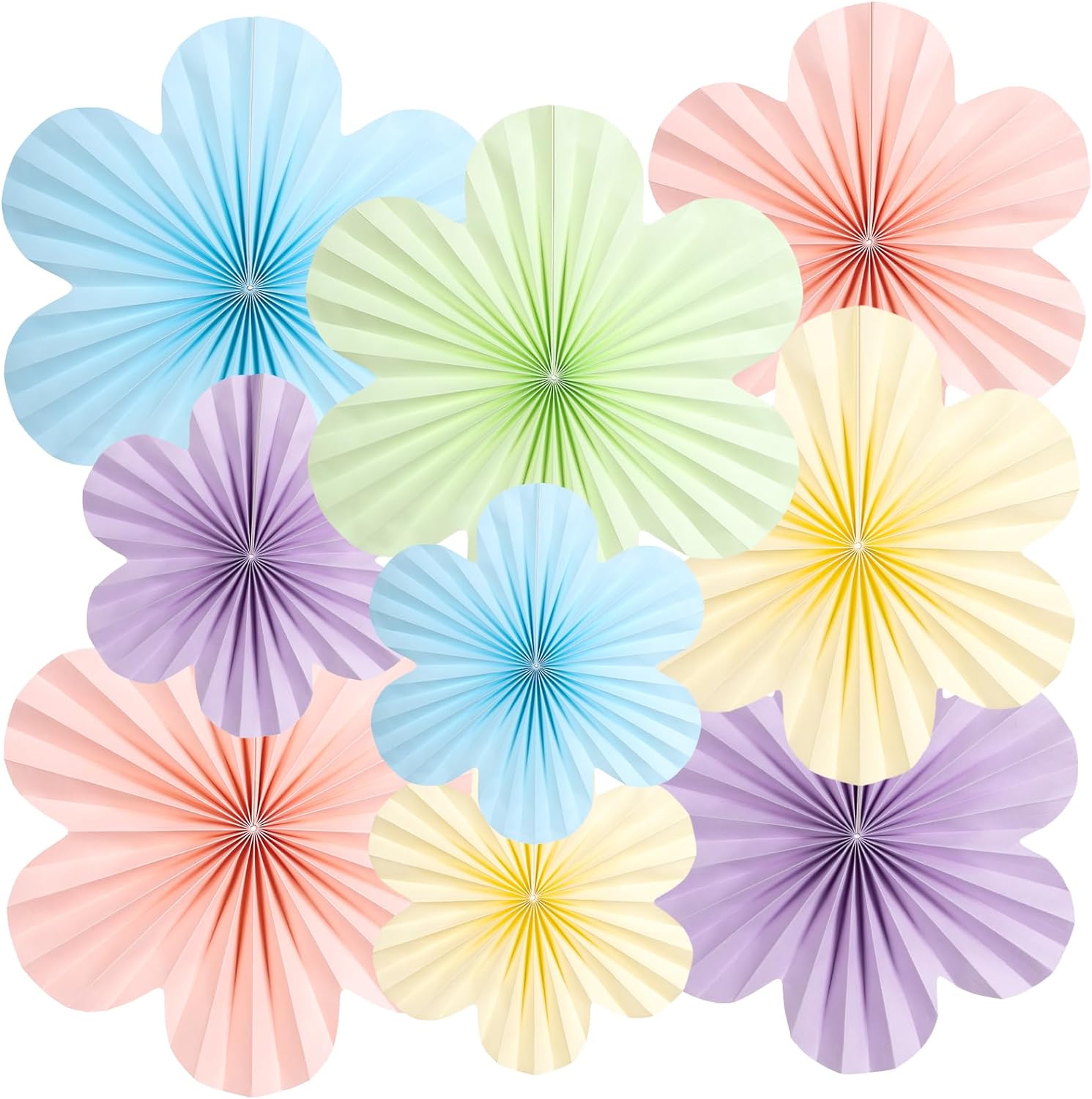 SUNBEAUTY 9 PCS Pastel Paper Flowers Decorations for Wall Paper Fans Classroom Decoration Paper Floral Backdrop Decor Paper Fans Decoration