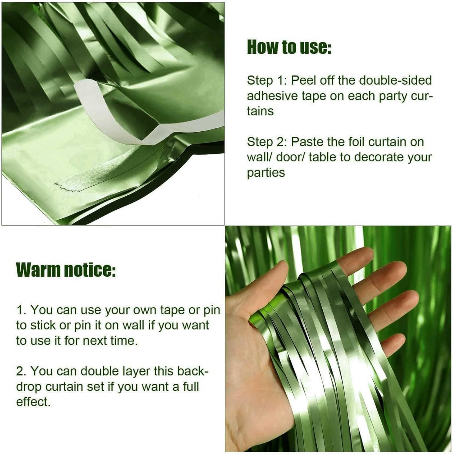 4 Pack Light Green Foil Fringe Curtain Backdrop, 3.28Ft x 8.2Ft Metallic Tinsel Foil Fringe Streamer Curtains for Photo Booth Props, Birthday, Wedding, Christmas Decorations Party Supplies New