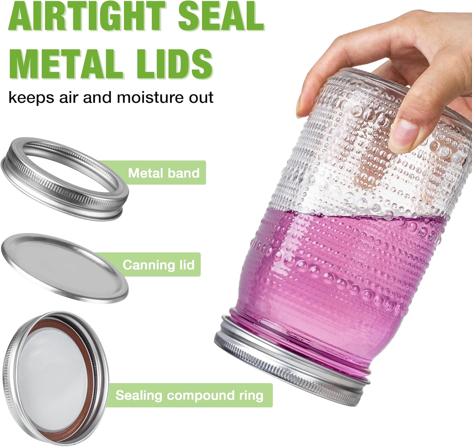 - Exclusive Patented Design Products - WACOI Mason jars feature an exclusive patented hobnail textured exterior design, look stylish and elegant, add color and convenience to your kitchen, cabinets, counter, tabletop, home, large size glass jar with lid is perfect for canning, pickling, preserving, fermenting fruits, pickles, vegetables.