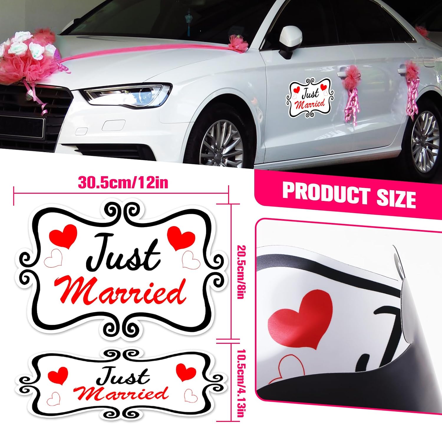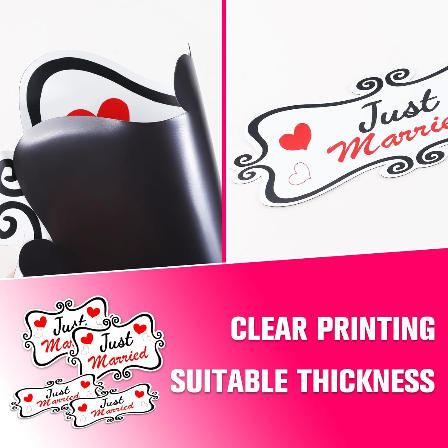- CELEBRATE IN STYLE: These just married car magnets allow you to proudly show off your new marital status wherever you go in fun, colorful vinyl designs. If you receive a magnet that is warped and not magnetic, please contact me promptly