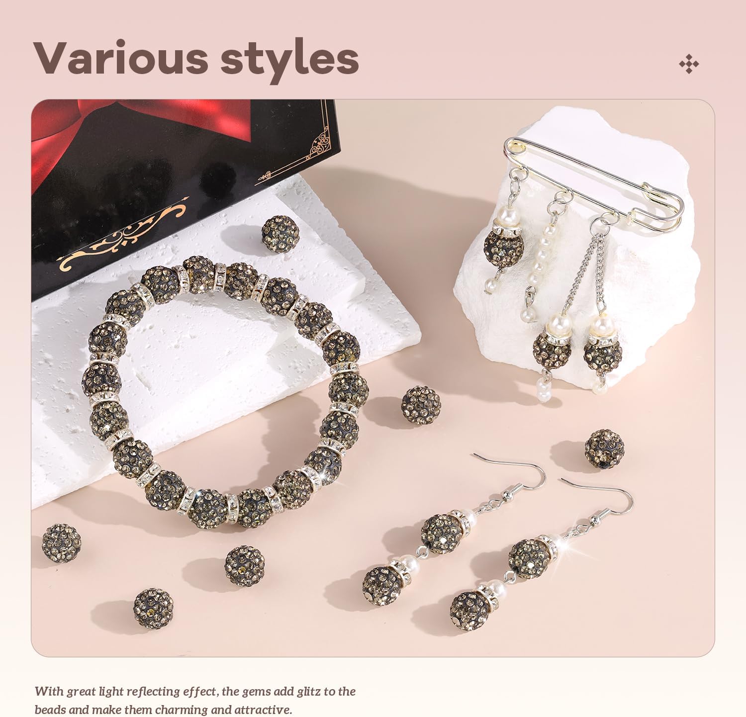 - BLING EFFECT -- Our rhinestone beads are made of polymer clay, embedded with superior quality glass rhinestones. We do quality control management to ensure the high quality of the bling beads. Rhinestones cover the entire surface and are not easy to fall off, shining like a diamond. With great light reflecting effect, the gems add glitz to the beads and make them charming and eye-catching. Wearing ornaments made from these beads, you will be the center of attention.