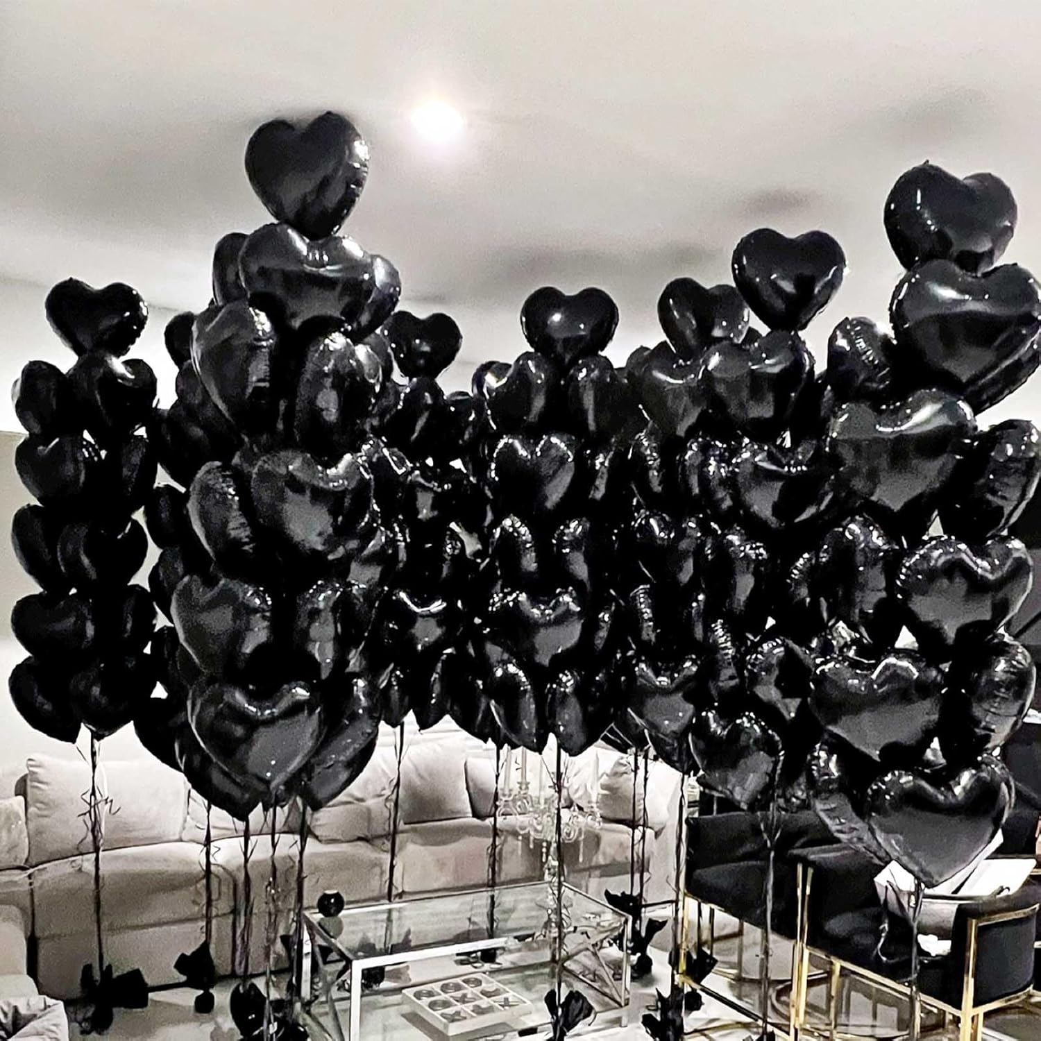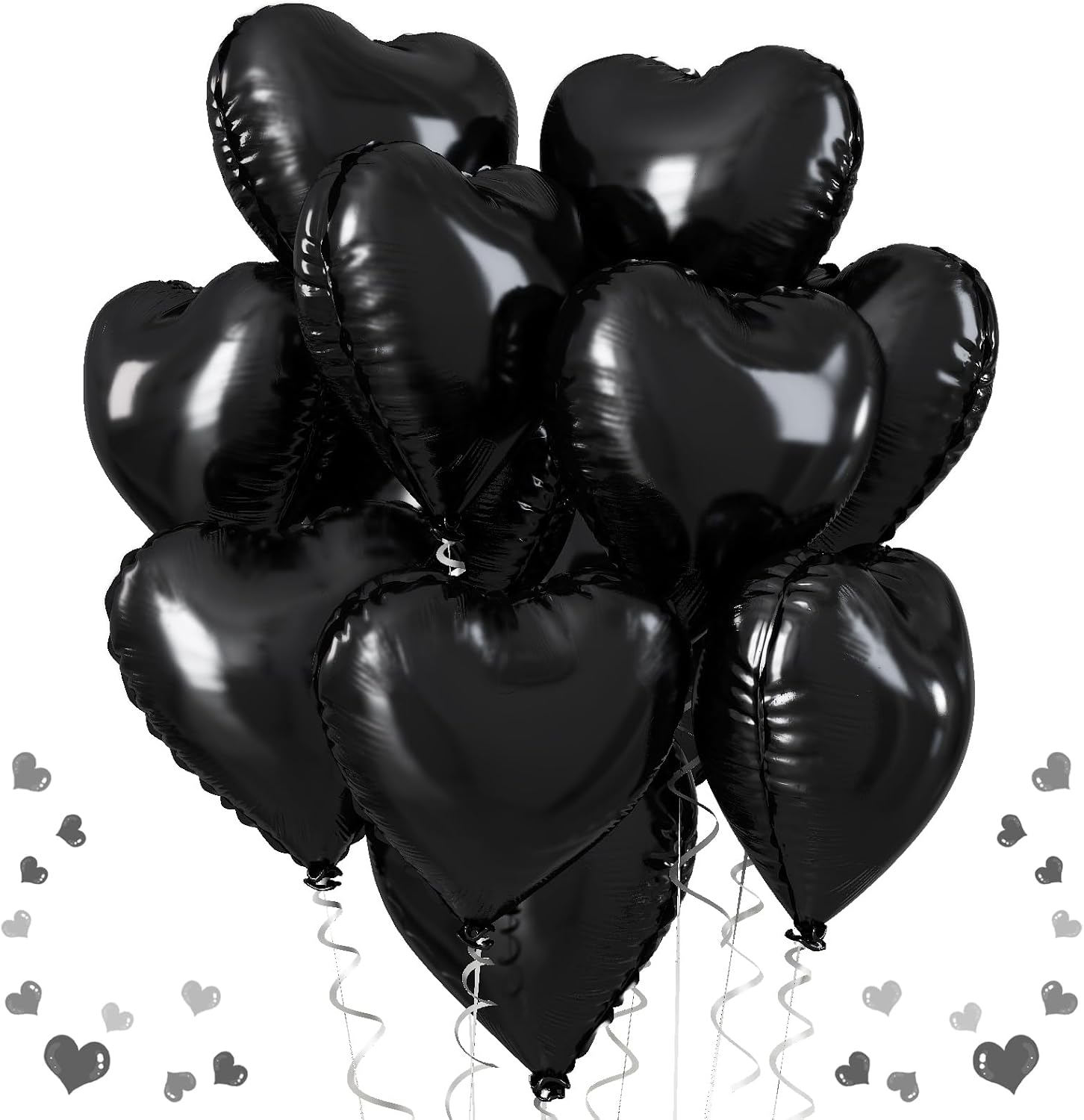 - Black Heart Balloons: There are 12pcs 18 inch black heart foil balloons and 1pc ribbons. Hearts foil balloons are the optimal choice for any party occasion, adding vibrancy and cheer to your festivities.