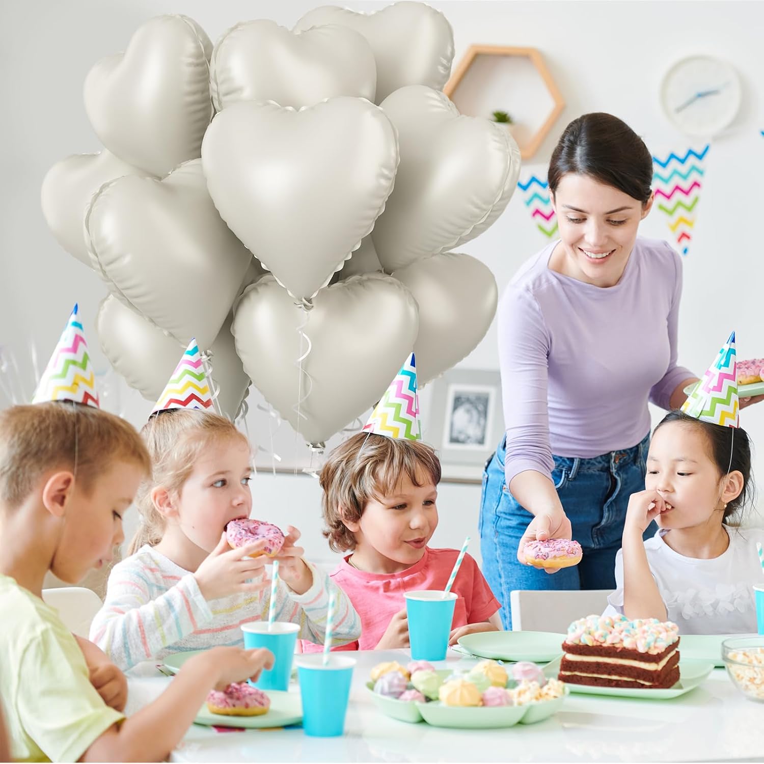 Cream Heart Balloons, 18 Inch Cream Heart Foil Balloons, 12Pcs Boho Beige Heart Shape Foil Balloon, Cream White Helium Foil Balloon Party Decoration for Boho Wedding Girls Women Birthday Baby Shower