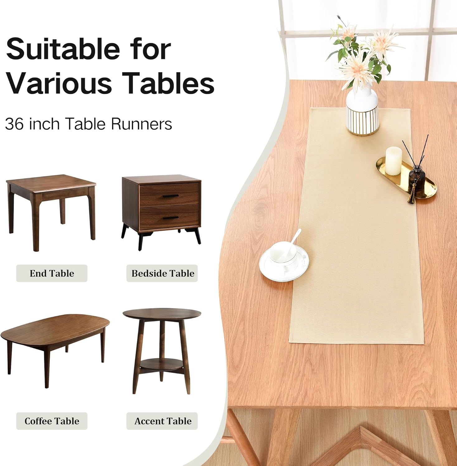 - Serviceable Materials: This beige table runner is made of polyester, which makes them soft, reliable and reusable. In addition, it will not shrink or fade because of washing. Our advanced fabrics and exquisite craftsmanship not only make this table runner quite practical, but also bring it high quality texture.