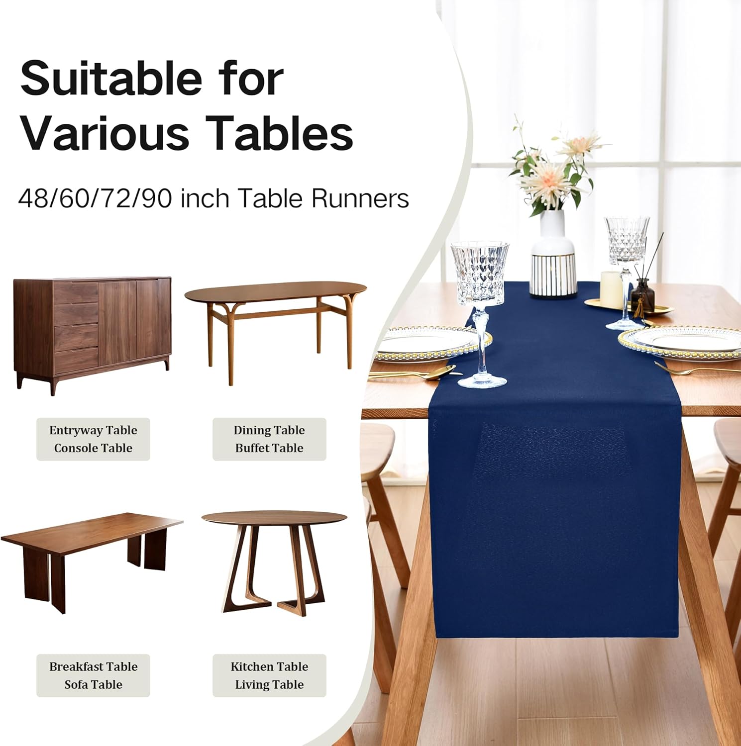 Farmhouse Navy Blue Table Runner Dining Table Runners 90 Inches Long Coffee Table Runner for Dresser Living Room Bedroom Holiday Party Banquet 12X90 Inch