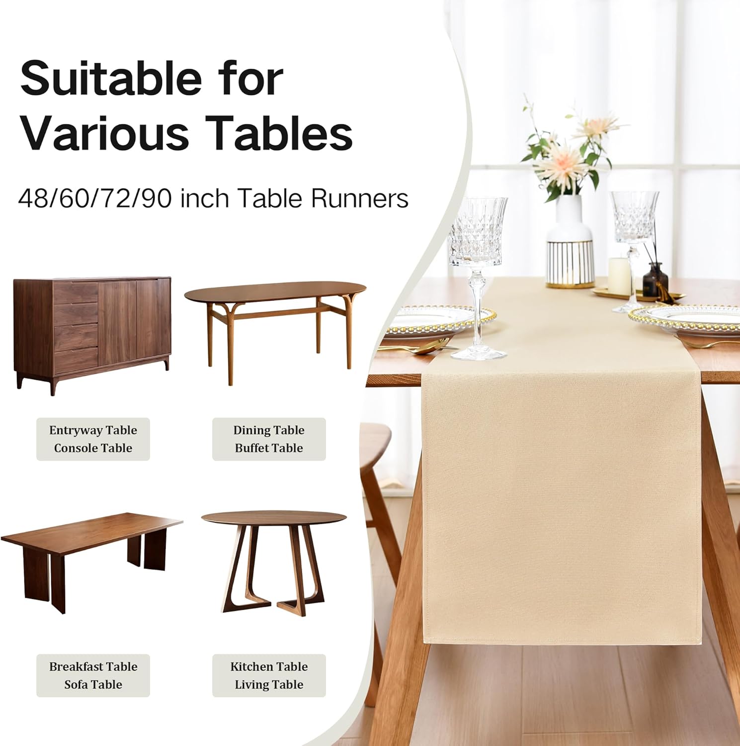 - Serviceable Materials: This beige table runner is made of polyester, which makes them soft, reliable and reusable. In addition, it will not shrink or fade because of washing. Our advanced fabrics and exquisite craftsmanship not only make this table runner quite practical, but also bring it high quality texture.