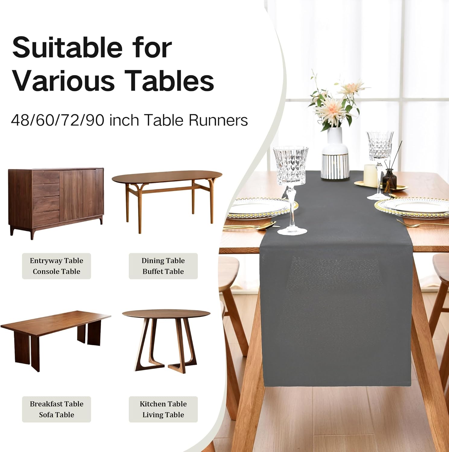- Serviceable Materials: This grey table runner is made of polyester, which makes them soft, reliable and reusable. In addition, it will not shrink or fade because of washing. Our advanced fabrics and exquisite craftsmanship not only make this table runner quite practical, but also bring it high quality texture.