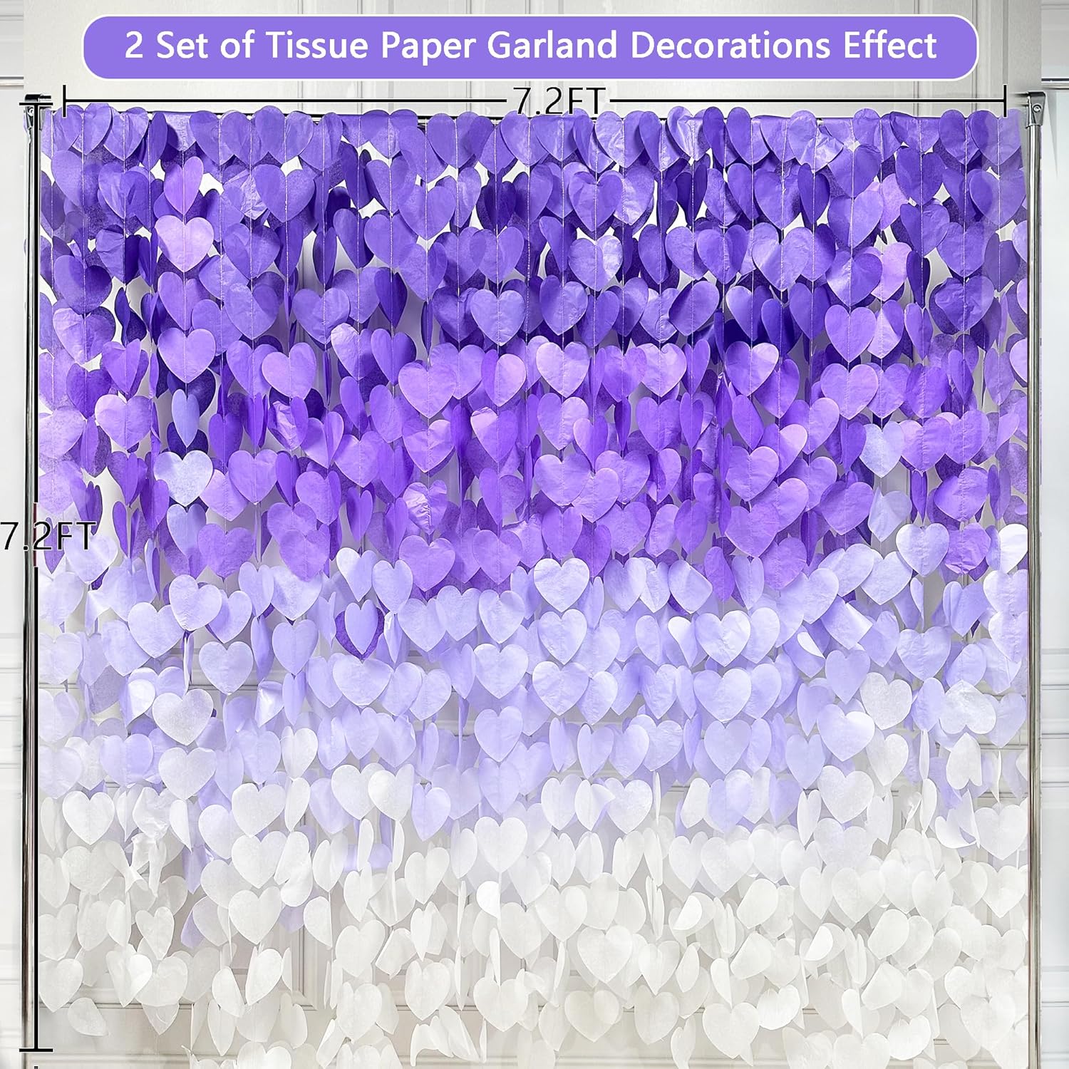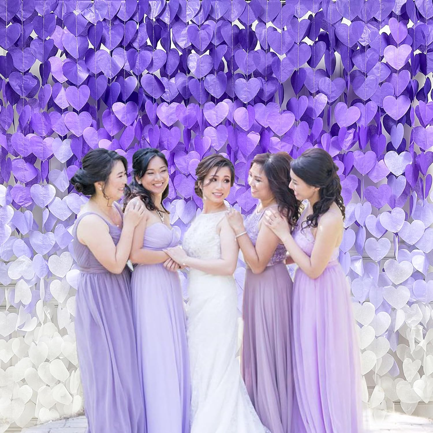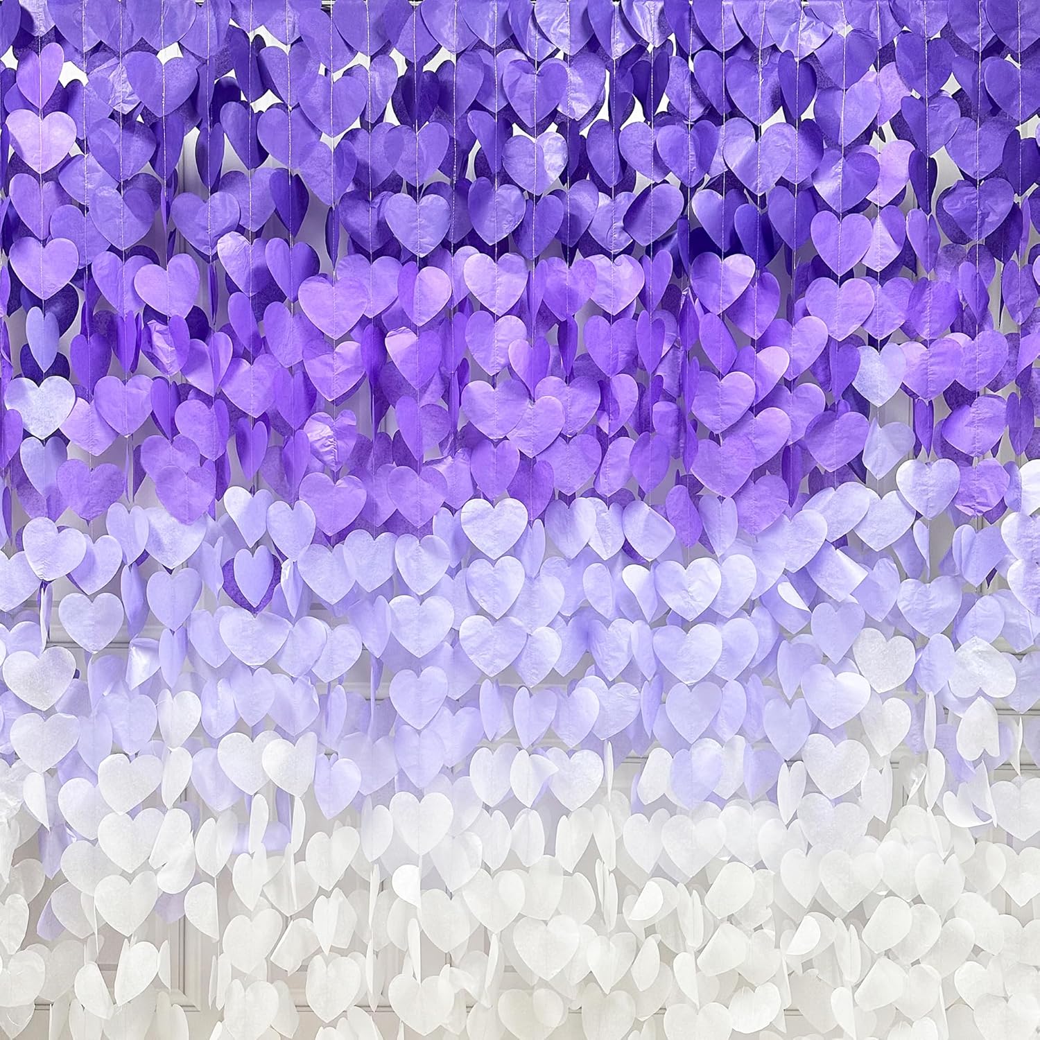 205Ft Lavender Party Decoration Ombre Purple White Heart Backdrop Streamer Tissue Paper Heart Hanging Garland for Birthday Valentines Day Bachelorette Wedding Bridal Shower Lilac Violet Party Supplies