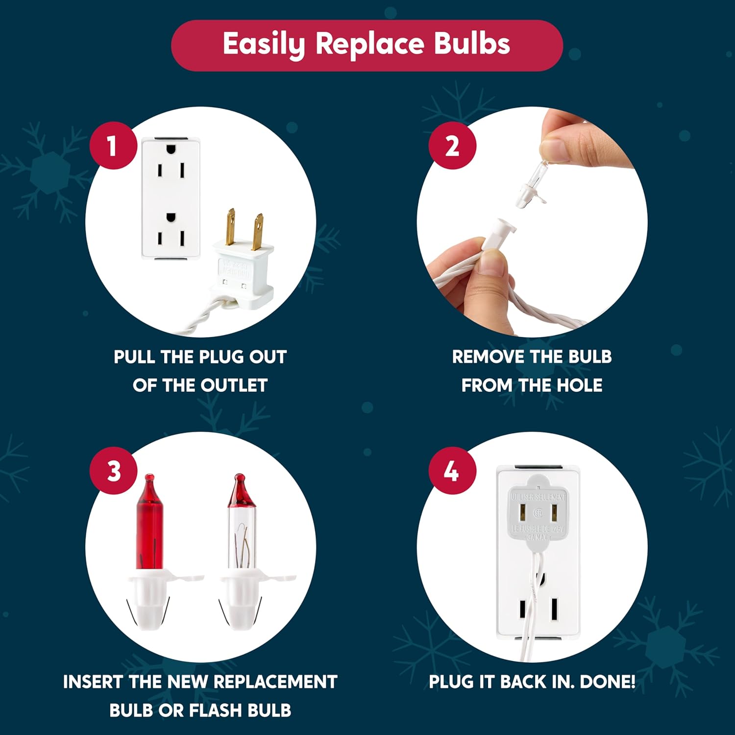 - All-Weather Durability & Independent Bulb Design. Engineered for reliability, these independently wired bulbs ensure if one burns out, the rest stay lit! Designed with premium materials to endure outdoor conditions, and includes spare bulbs and fuses for easy replacement—ideal for long-lasting seasonal and year-round use.