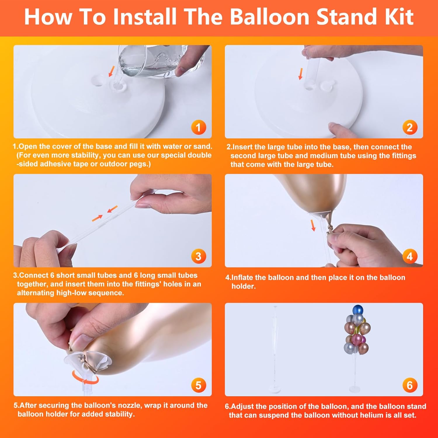 - Package Included - Complete Set for Your Convenience: Our KATBUU balloon arch kit includes 4 sets of balloon stands, featuring 88 unattached balloon tubes, 52 balloon holders, 8 seven-hole connectors, 28 connectors, 4 water-filled base, 4 floor spike, 8 double-sided tape, and 1 set of user instructions. No need for a rental helium tank - create stunning balloon displays right at home. This is sure to make your PARTY special.