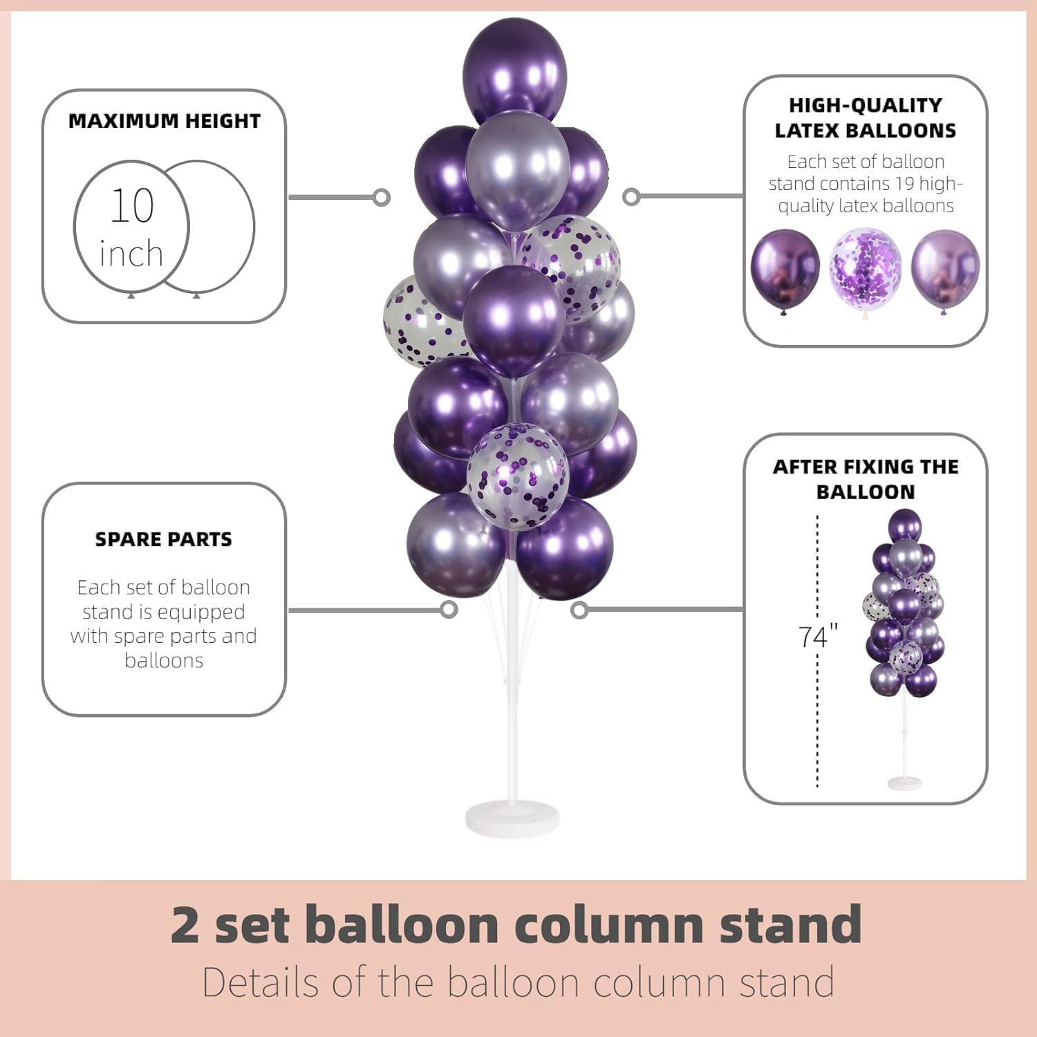 Balloon Column Kit Set of 2 With Balloons Included - with Base, and Pole,Balloon Tower Backdrop Decoration for Wedding, Baby Shower, Birthday Party, or Bachelorette Parties (Metallic purple)