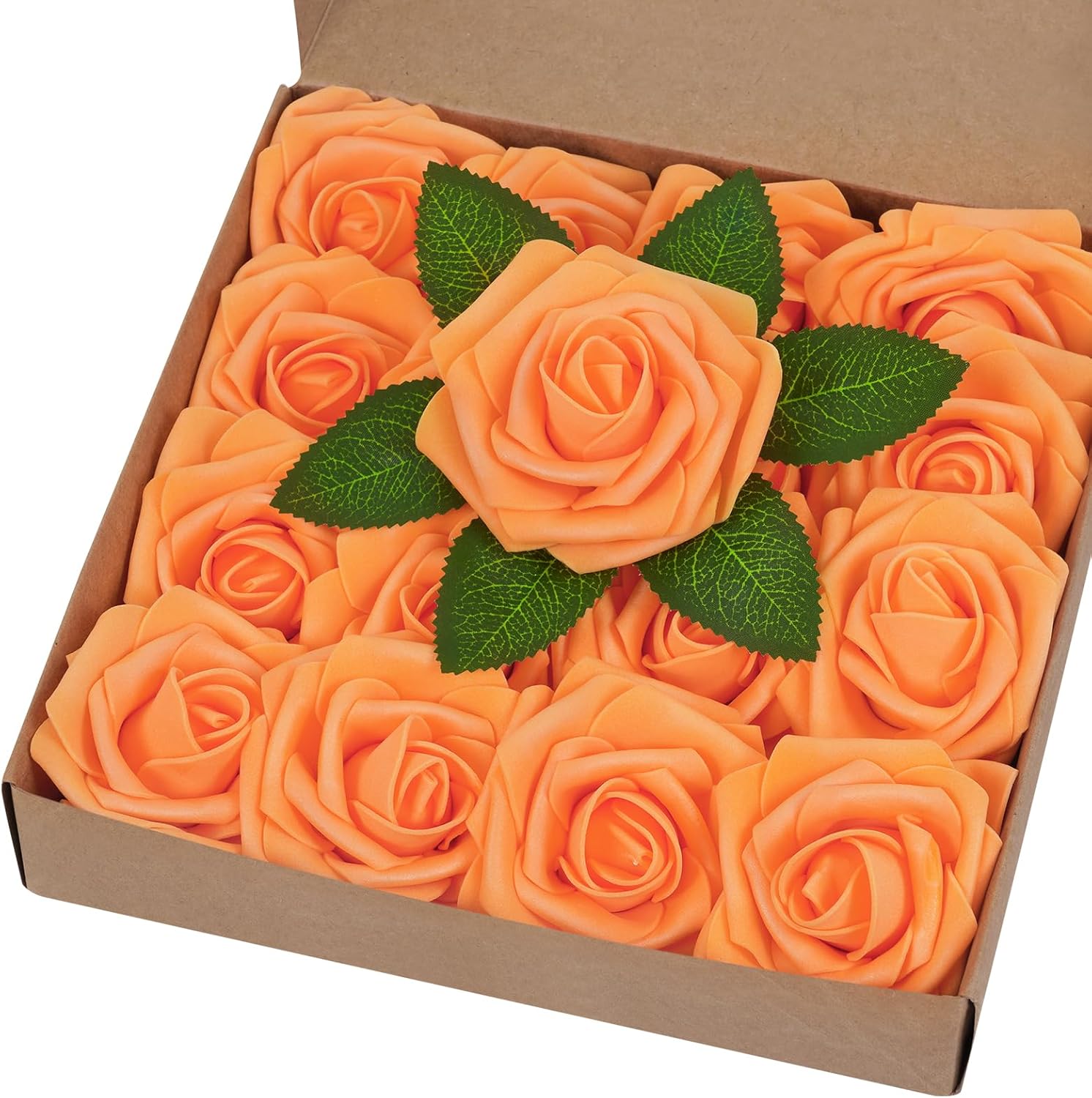 - Kindle Your Creative Flames: The box includes 16 orange roses (3" flower head, 8" stem) and 4 green rose leaves, perfect for an array of DIY crafts. Whether creating wedding bouquets, graduation or birthday party ornaments, baby shower decorations, or cake adornments, our faux roses add a touch of class to every important moment.