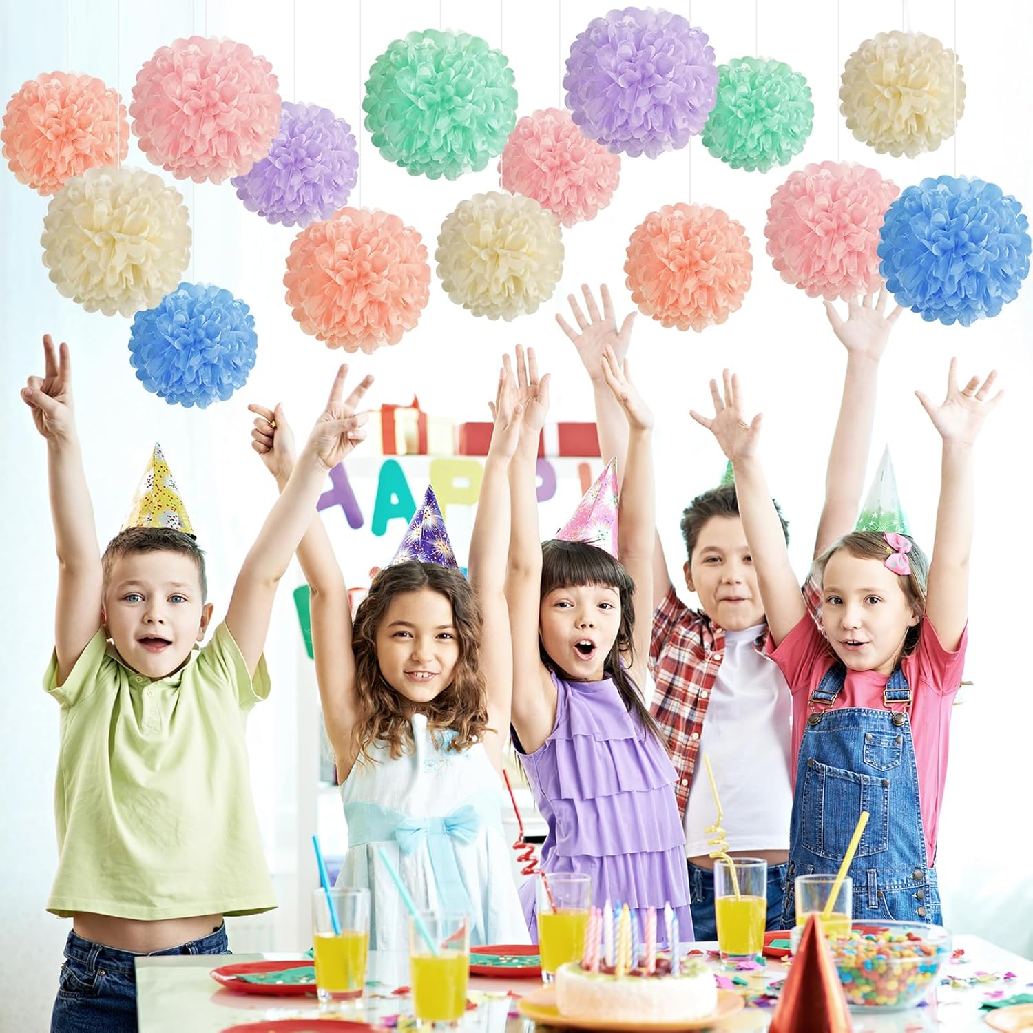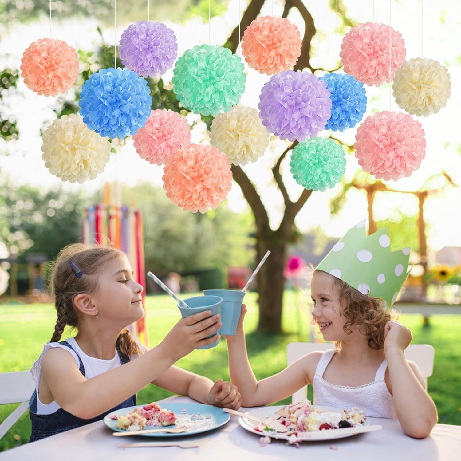 - Colorful Pastel Tissue Pom Poms Decoration: The 15PCS Pastel Paper Tissue Pom Poms include various soft pastel shades, creating a cheerful and sweet atmosphere for any occasion.