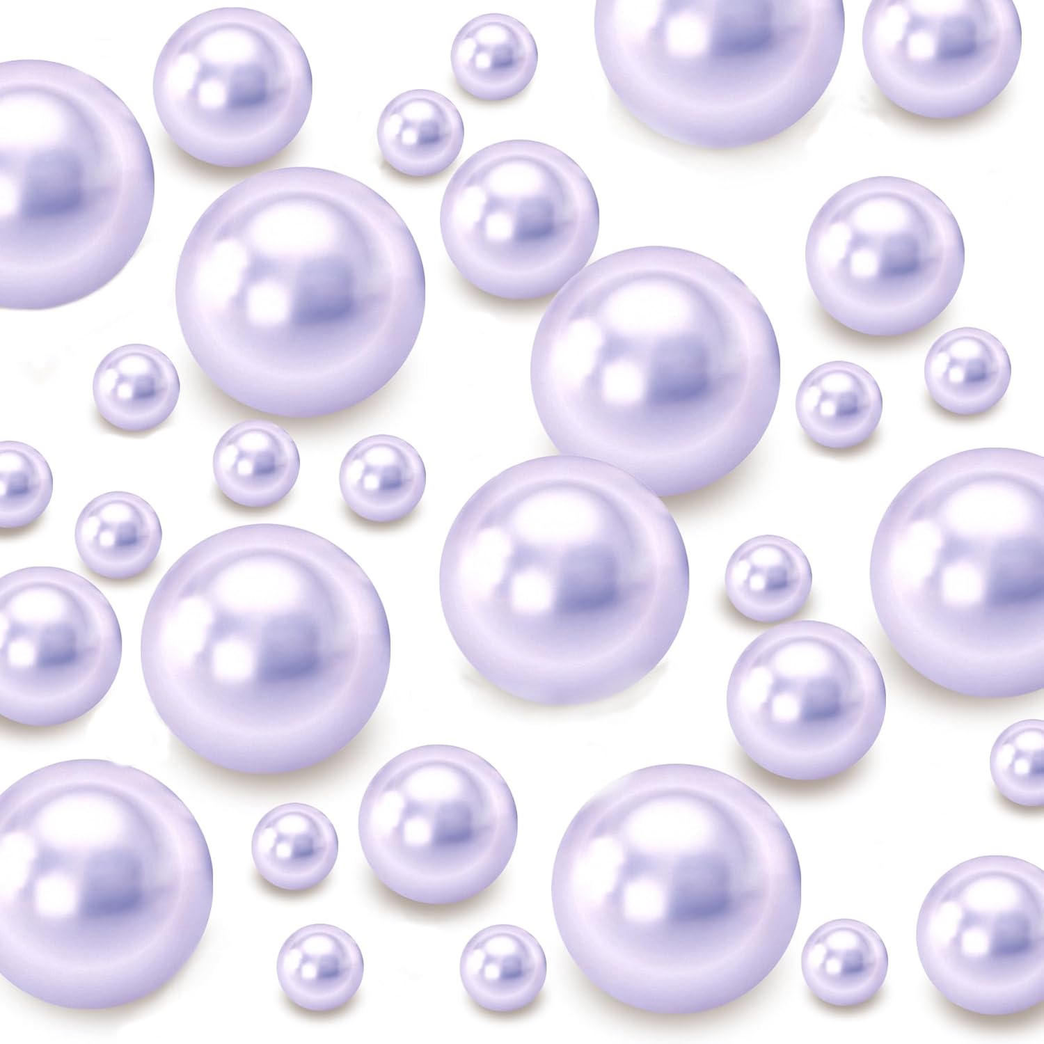 120 PCS 8/14/20mm No Hole Polish Pearl Beads for Centerpiece, Light Purple Beads Decorative Vase Fillers, Plastics Pearls for Vases, Table Scatters, Wedding Party Decor