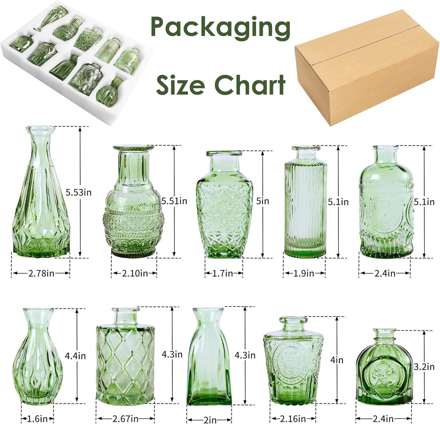 - SPECIAL DESIGN: The small vases for flowers set of 10, Each vase is literally decorated with special etching patterns to further enhance its look. They are graceful and can be used for any occasion, from elegant to classic casual. They will make a great decorative highlight on your window sill, on your dining table or as a wedding centrepiece.