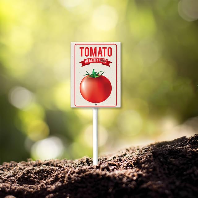 - [Extra large size] The plant tags total height 17.6", Width 4.6“ , Thickness is 0.07". The extra large size of the label makes the graphics are easy to read and attractive. Ther are thick, tall, and sturdy, and go into the ground easily