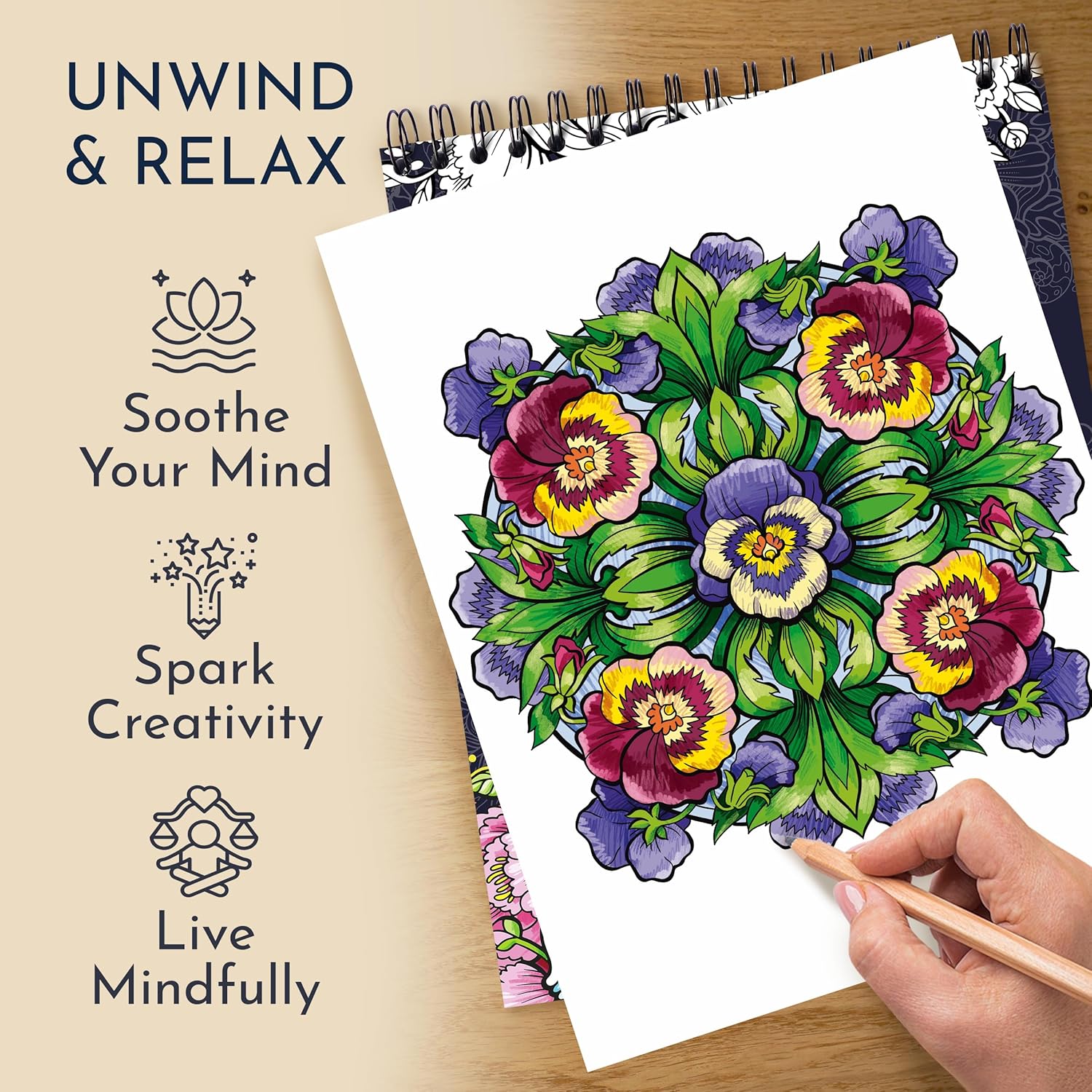 RYVE Mandala Coloring Book for Adults - 50 Unique Mandalas for Relaxation & Stress Relief - Spiral Coloring Book for Adults, Relax and Mindfulness Gifts for Women and Men, Spiral Bound