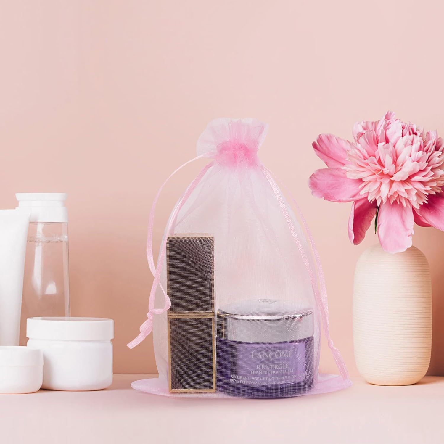 50 Pcs Pink Organza Bags 6x9 Inch, Mesh Drawstring Pouch Bags for Gifts, Jewelry, Wedding Party Favors