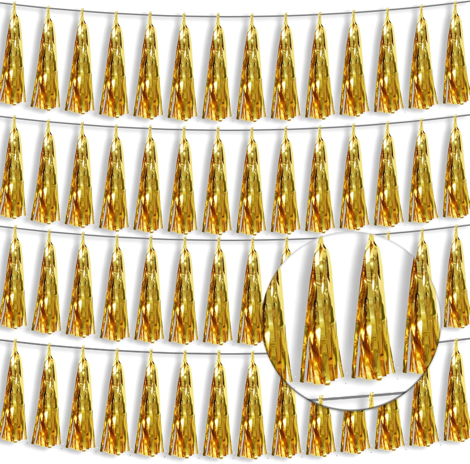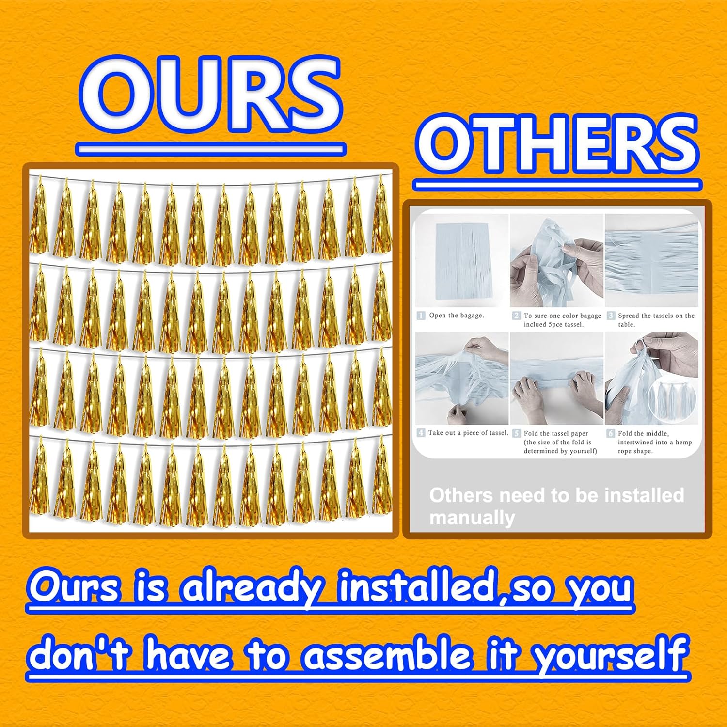 - 【Package Includes】The total length of the gold birthday tassels banner is 40 feet, divided into 4 strips, each 10 feet long. Each banner contains 15 tassels, and each tassel measures 14 inches, for birthday decorations many occasions uitable for Patriotic display, Homecoming Float, Christmas Float, ecorative metal trailers, graduation floats etc