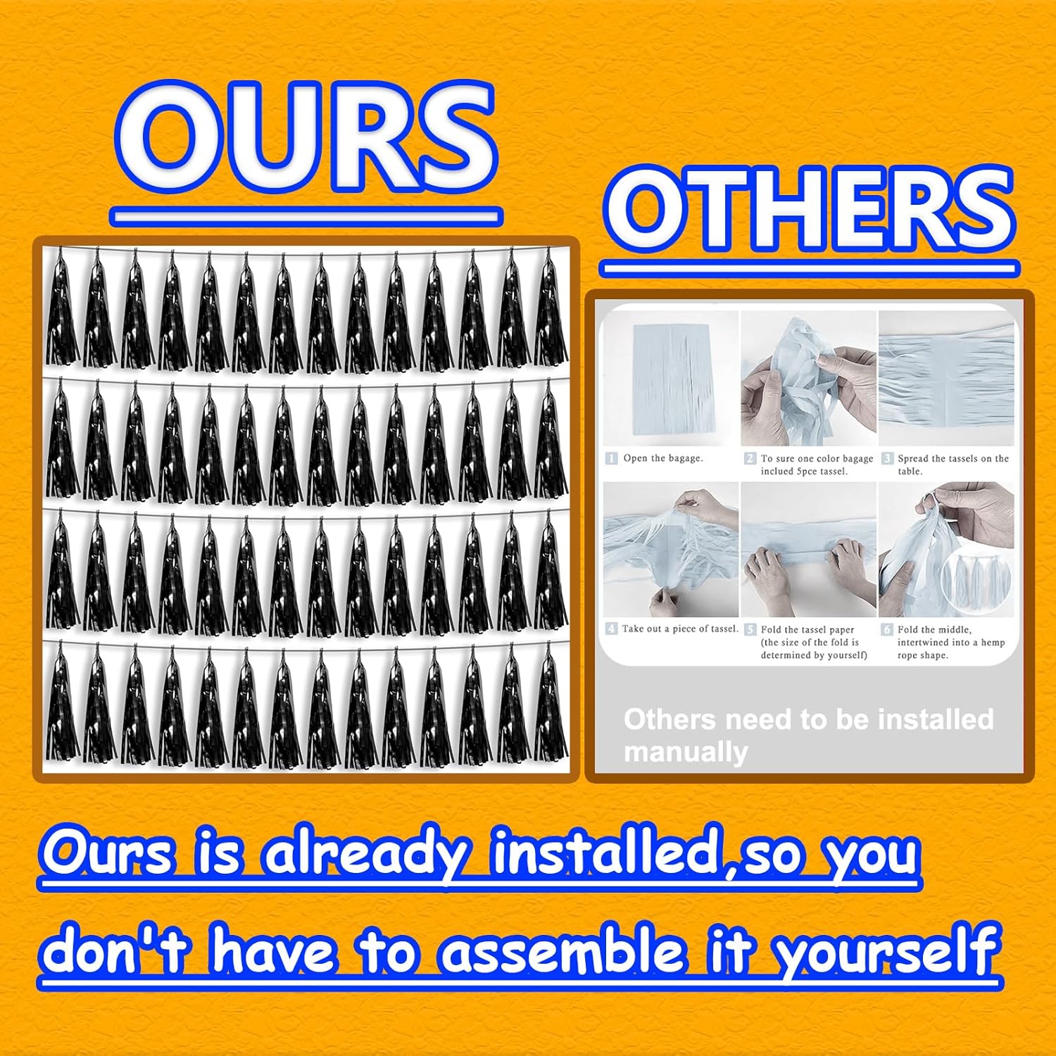 - 【Package Includes】The total length of the black birthday tassels banner is 40 feet, divided into 4 strips, each 10 feet long. Each banner contains 15 tassels, and each tassel measures 14 inches, for birthday decorations many occasions uitable for Patriotic display, Homecoming Float, Christmas Float, ecorative metal trailers, graduation floats etc