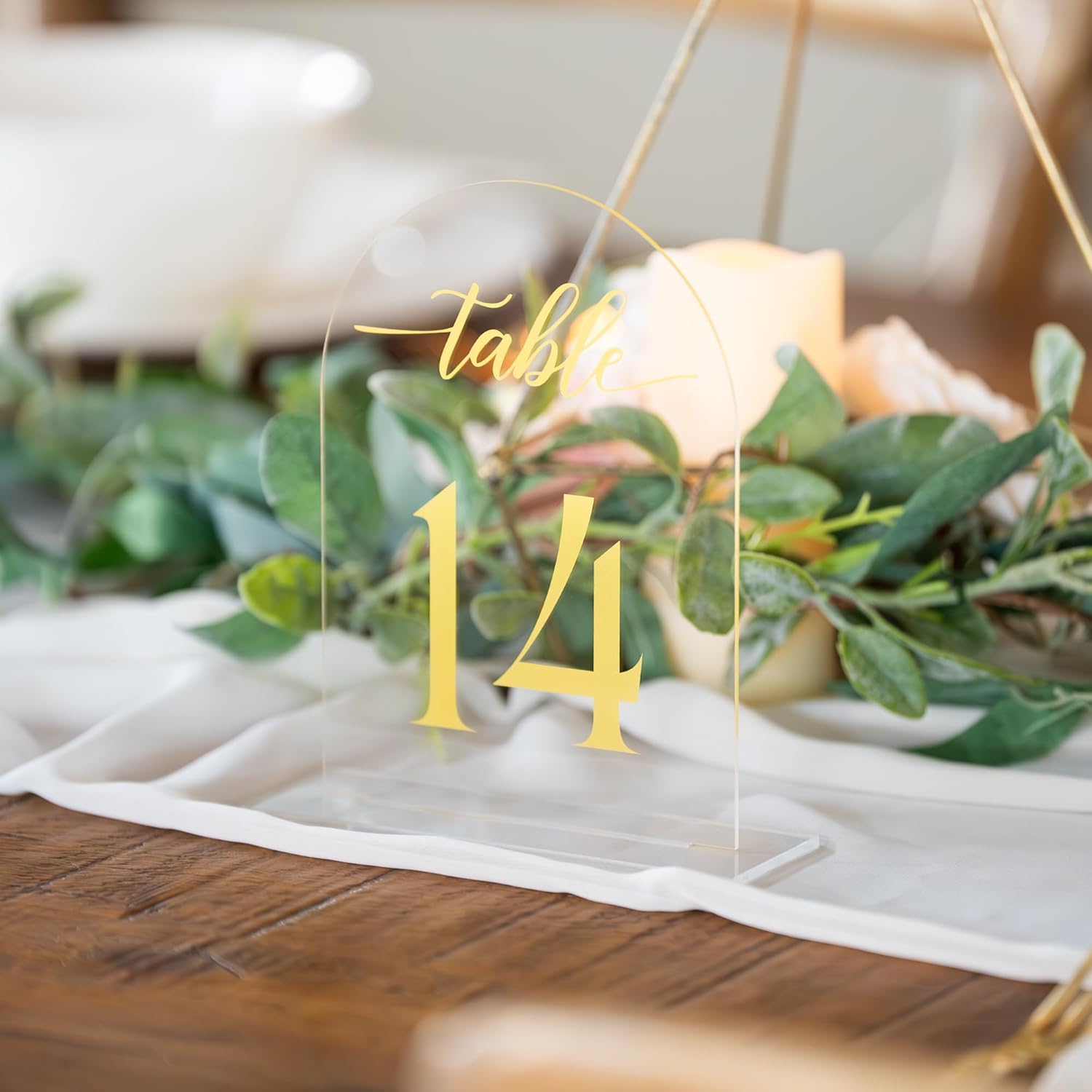 Clear Arch Acrylic Table Numbers for Wedding Reception - 5" x 7" Gold Font Centerpiece Set with Holder Stands & Head Table Sign - Anniversary, Event, Party, Wedding Set 1-20