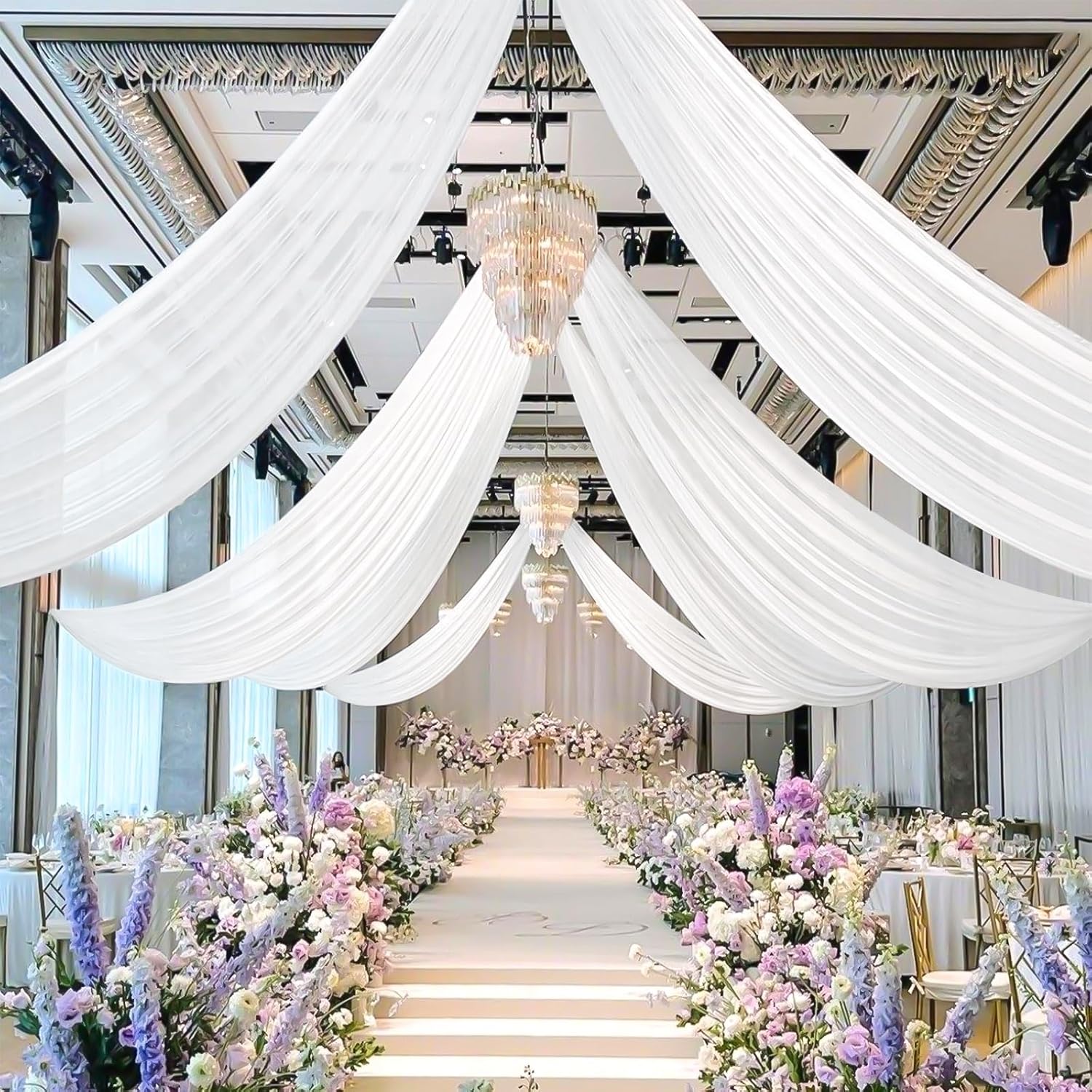 - 【Wedding Ceiling Curtain Widely Used】Wedding drapery ceiling can match well with many decorations, perfect for weddings ceiling, stages, receptions, parties, bridal and baby showers, birthdays, engagement, candy buffets, dessert tables, photography, ceremony and more. The sheer curtain can not only decorate the ceiling but also your arches, backdrop, curtains, chandeliers and so on.