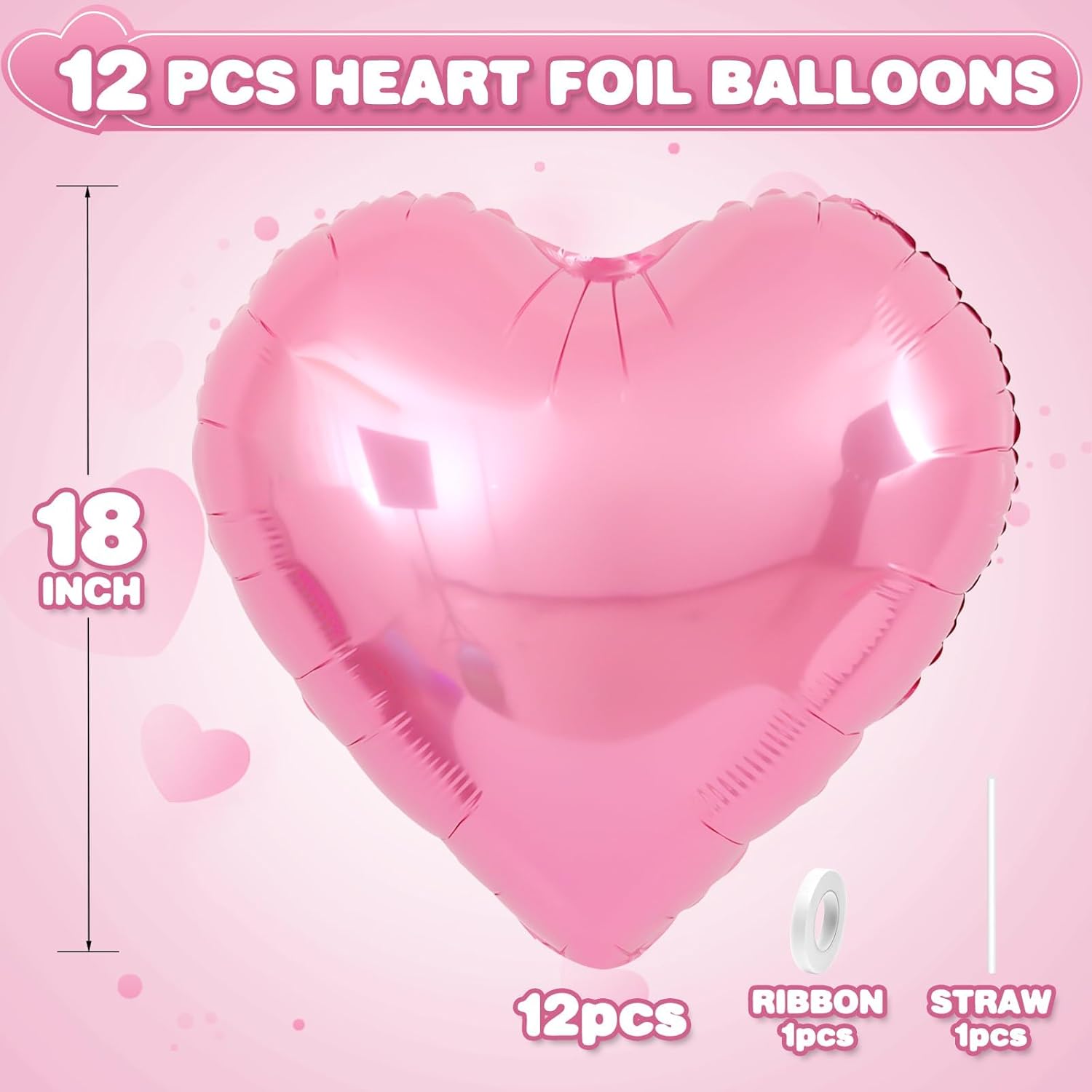 - Included Components : 12pcs 18Inch pink heart foil balloons, 1pc straw