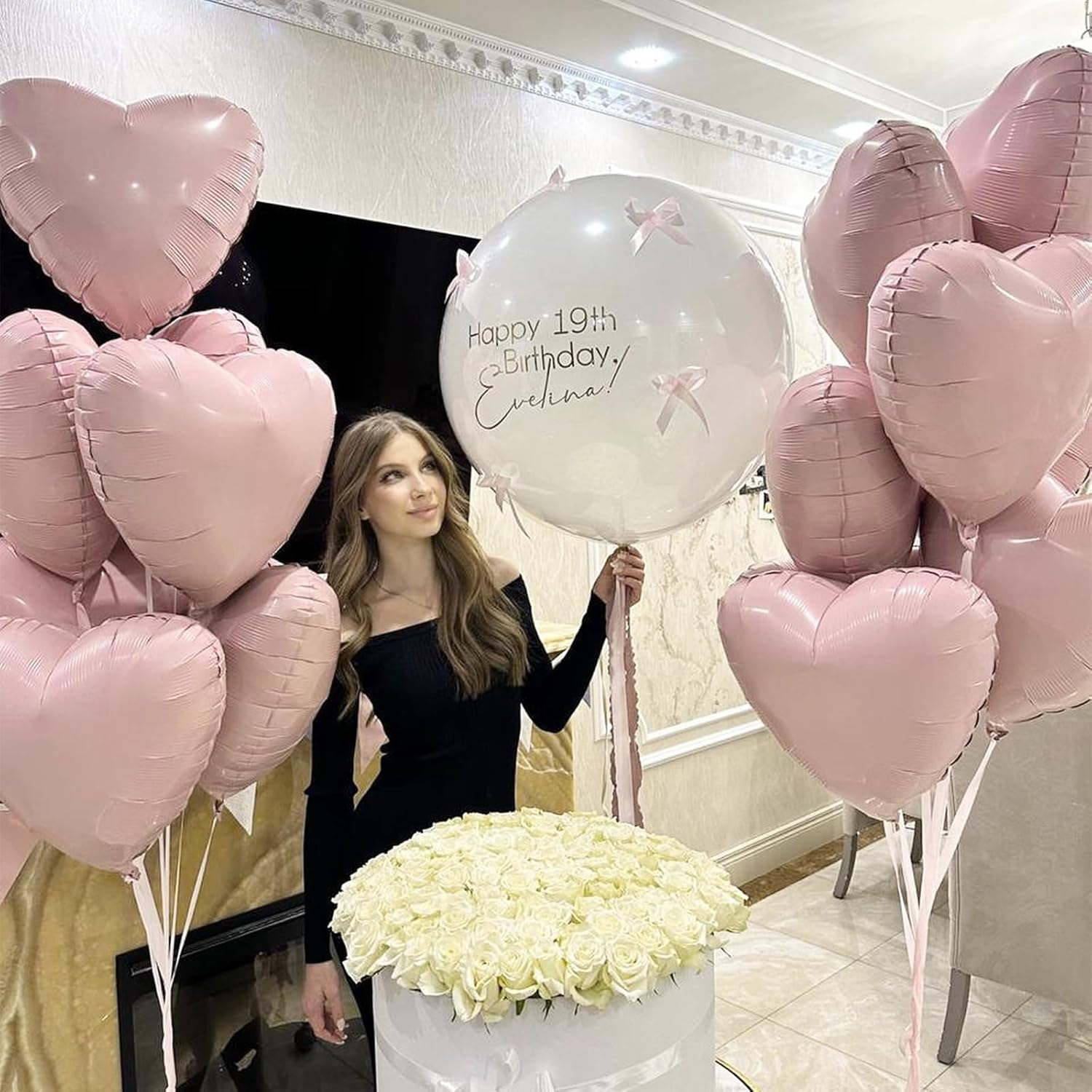 - Included Components : 12pcs 18Inch baby pink heart foil balloons, 1pc straw