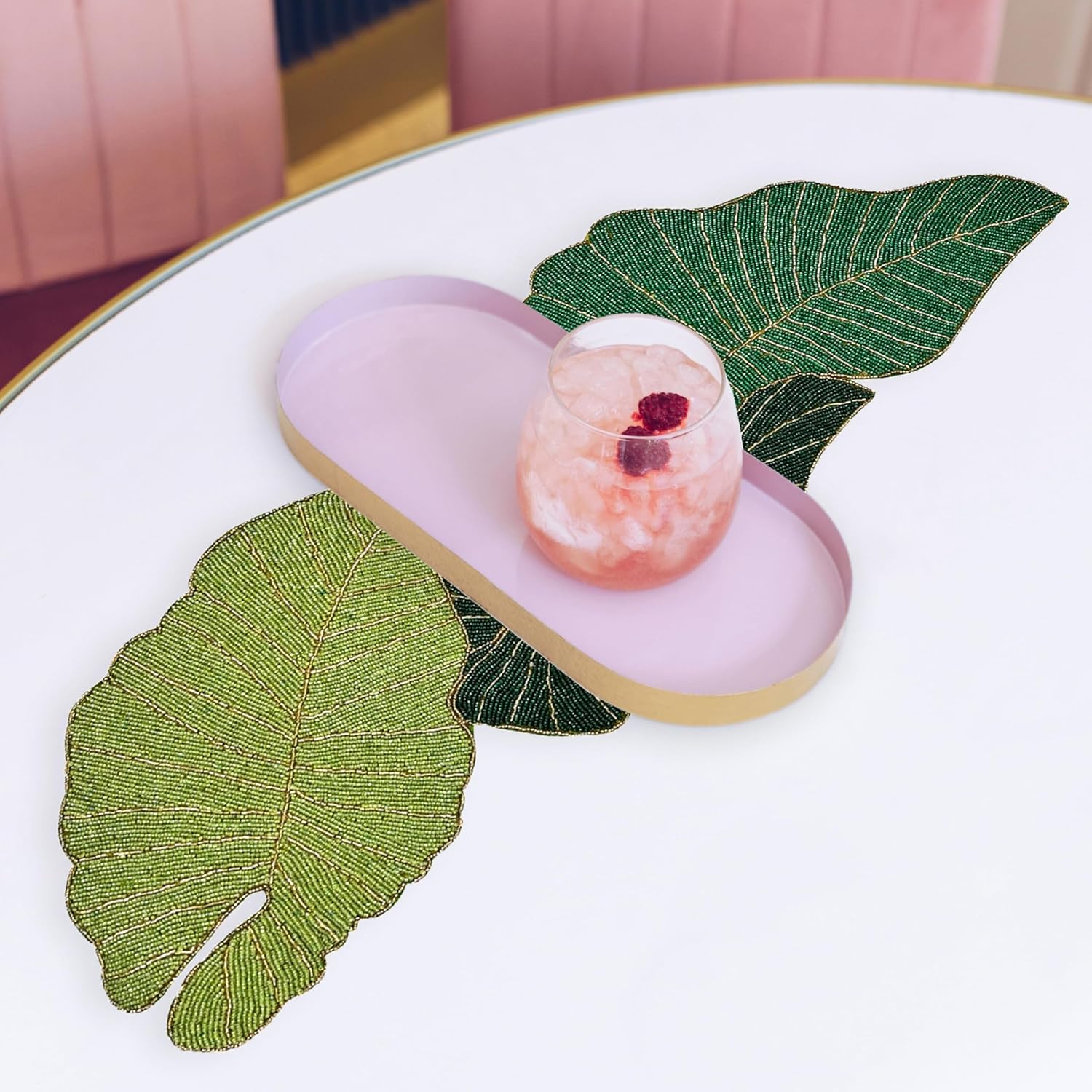 Luxury Beaded Table Runner - 13x36 Inches Handcrafted Leaf Pattern with Glass Beads & Polyester Back - Elegant Table Decor for Dining, Coffee Table & Events (Green) - CLEENTABLE