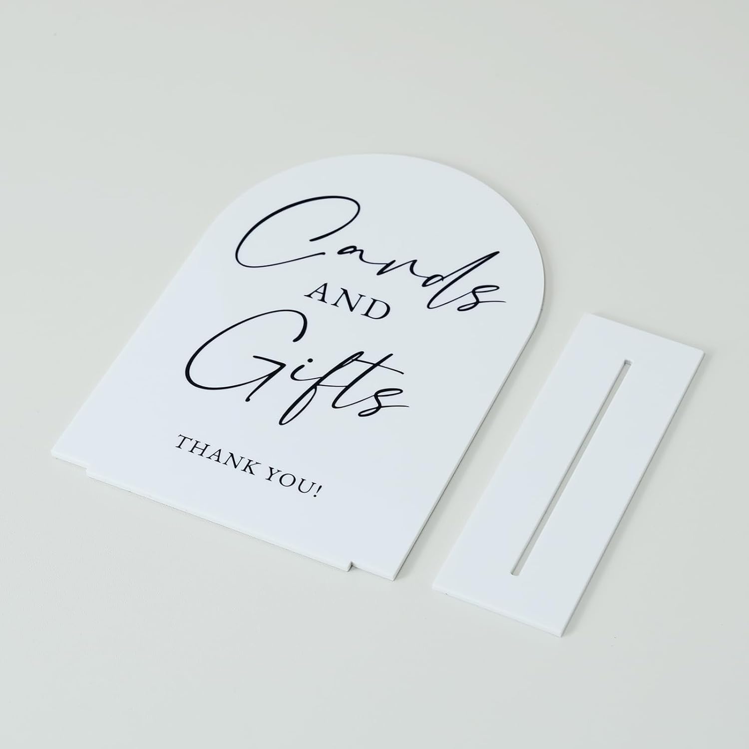 - Package Includes: You will receive a 5x7 inch white arch acrylic cards and gifts sign with base, smooth edges,1/8 inch thick.