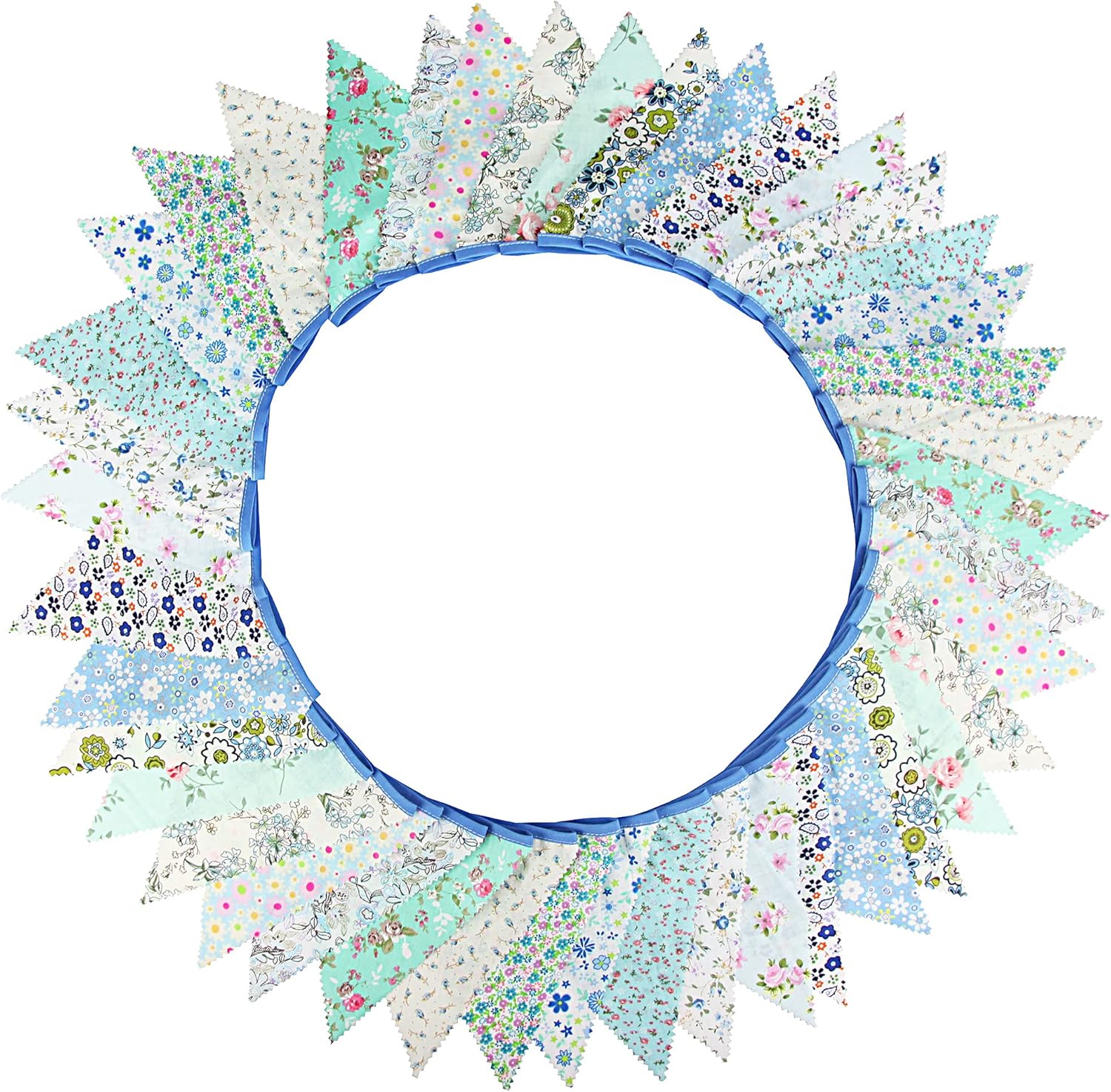 jijAcraft 39Ft Triangle Bunting Banner, 42Pcs Tea Floral Party Bunting Cotton Fabric Flags Pennant Garlands for Birthday Party, Wedding, Baby Shower, Outdoor and Home Decorations (Blue)