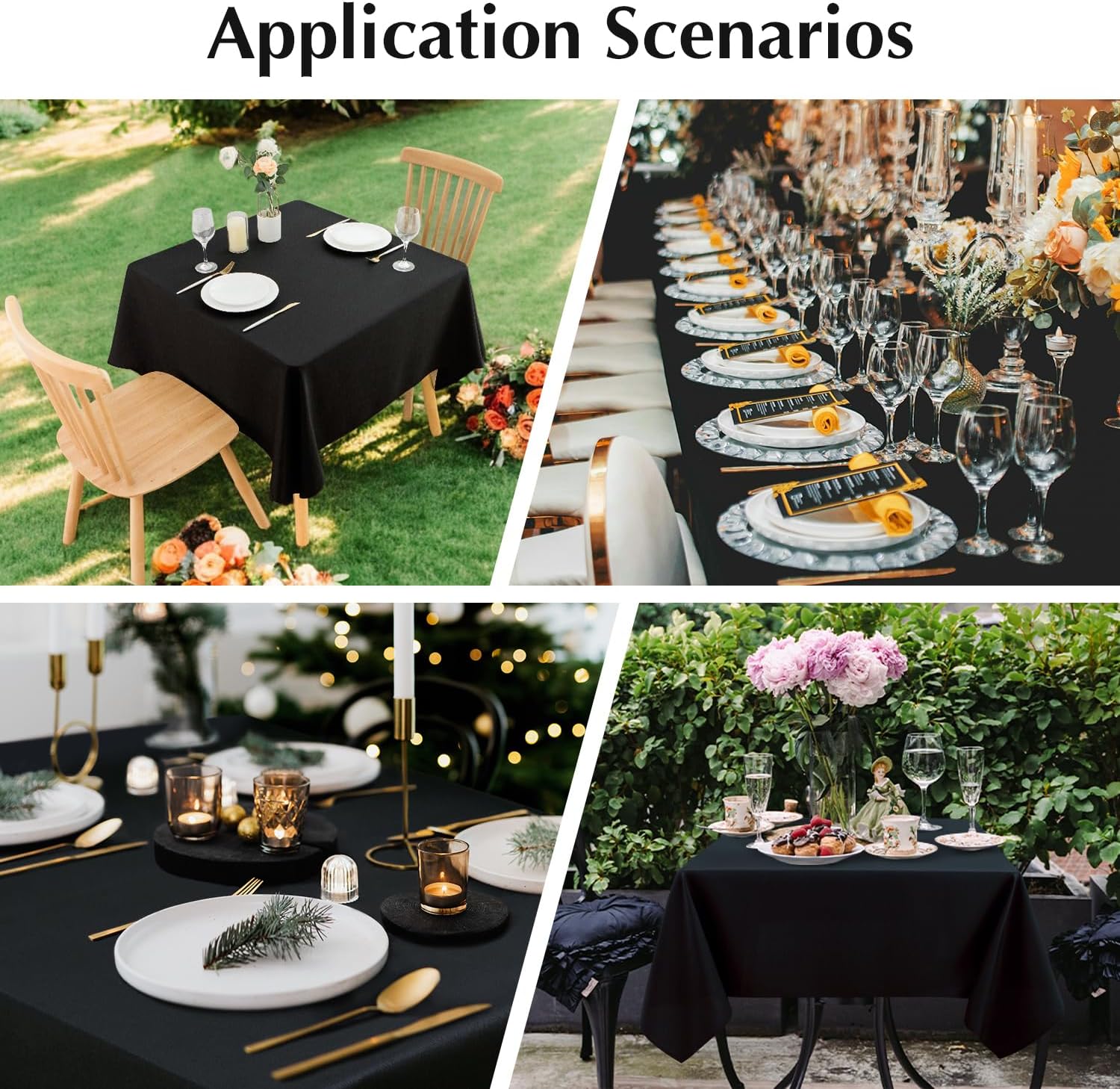 - Using Occasions: Whether it is a formal or daily occasion, whether there are indoor or outdoor activities, these simple and elegant tablecloths can be matched. You can use these dining tablecloths for weddings, parties, banquets, celebrations of various holidays, ceremonies, business settings, hotels, restaurants, dinners, etc. Besides, these square washable table cloths can also decorate your home, adding a touch of elegance and romance to your dining and everyday life