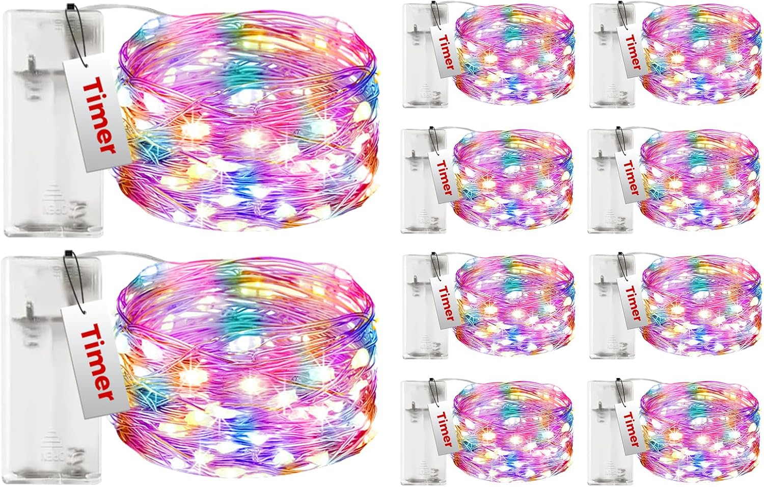 btfarm 10 Pack Fairy Lights Battery Operated with Timer, 10FT 30LED Twinkle Lights Waterproof, Copper Wire Christmas String Lights Battery Powered for Indoor Outdoor Wedding Party Holiday Decorations