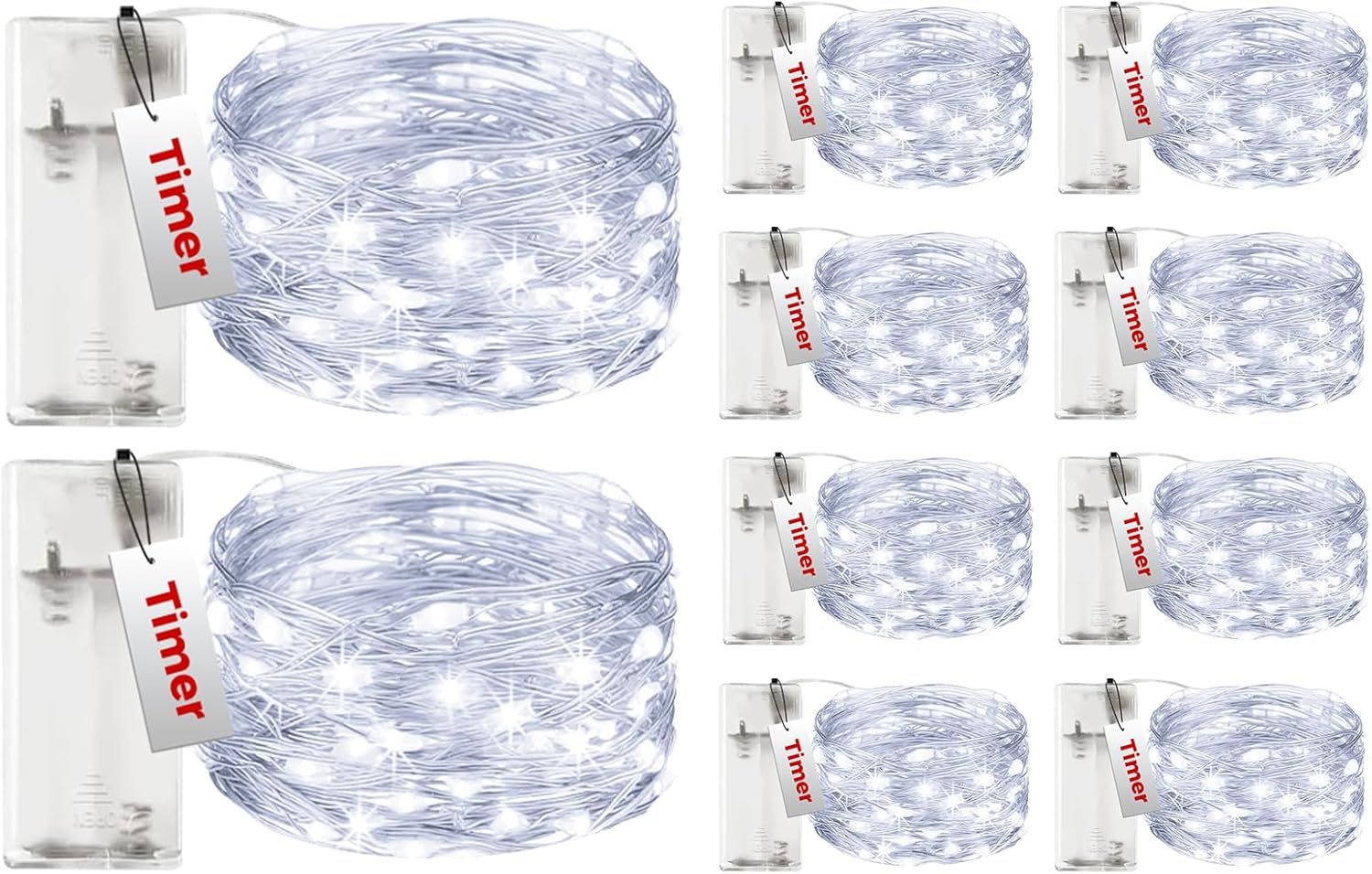 btfarm 10 Pack Fairy Lights Battery Operated with Timer, 10FT 30LED Twinkle Lights Waterproof, Copper Wire Christmas String Lights Battery Powered for Indoor Outdoor Wedding Party Holiday Decorations