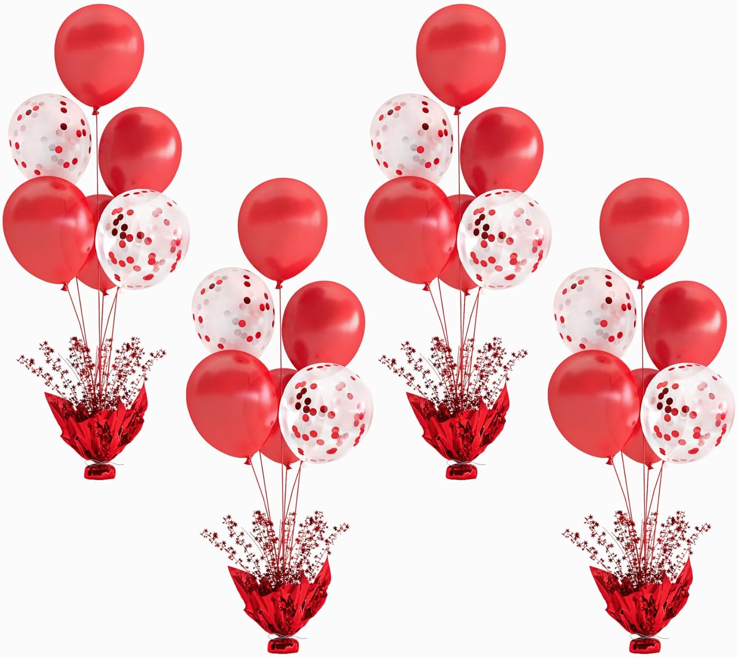 - Red Balloon Centerpiece Kit Includes: 4 reusable red balloon stands for table (including 4 red foil star spray bases, 12 sticks, 12 stick connectors, and 24 cups) and 24 12-inch latex balloons, providing everything you need to create stunning table centerpieces