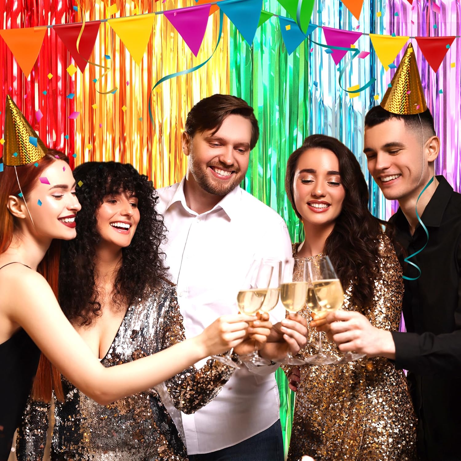 Crosize 2 Pack 3.3 x 8.2 ft Rainbow Foil Fringe Curtains Party Decorations, Tinsel Curtain Backdrop for Parties, Door Streamers, Glitter Streamer Fringe Backdrop for Birthday Decoration