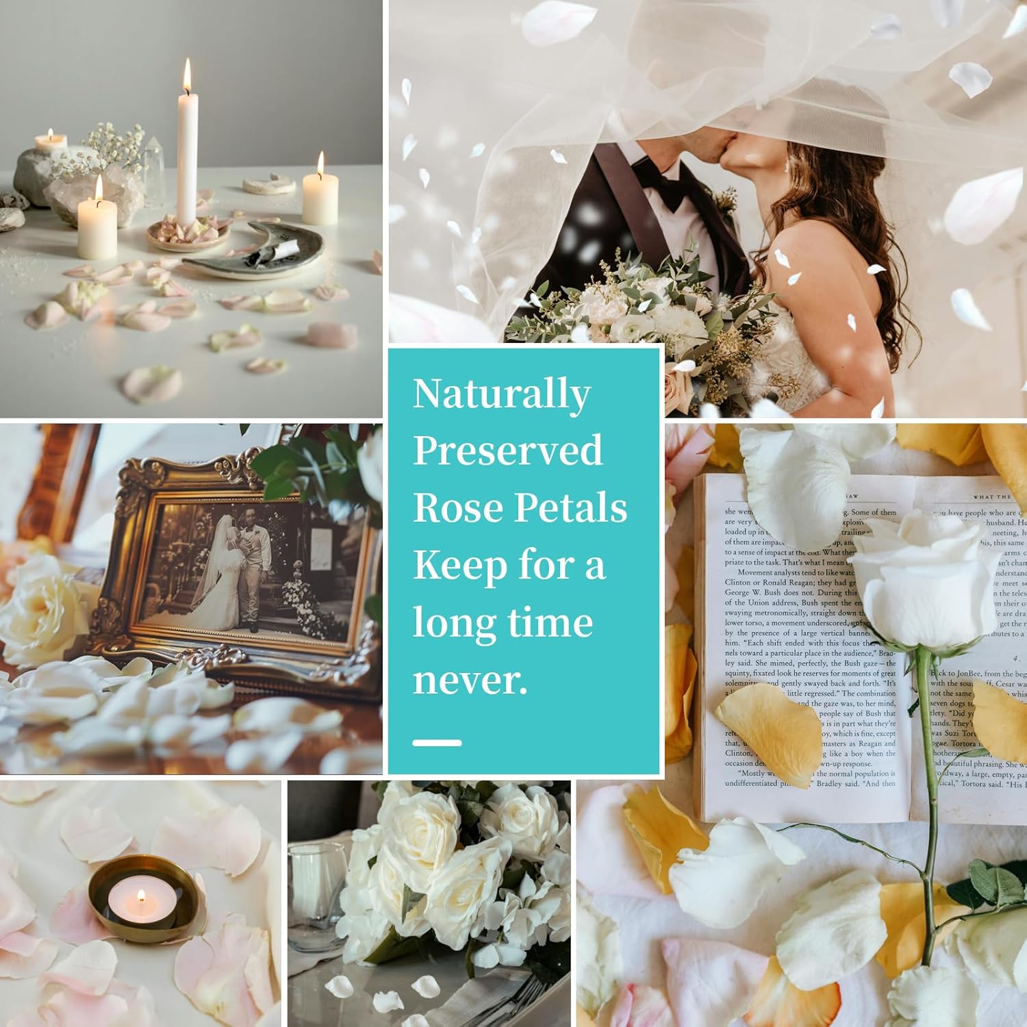 - Rich Usage Scenarios: The exquisite rose petals are perfect for sprinkling on wedding tables, church aisles, candy buffets, romantic nights, themed parties, or simply placing them in a basket as decoration. They are perfect for weddings, surprise proposals, Valentine's Day, celebrations, honeymoons, and anniversaries