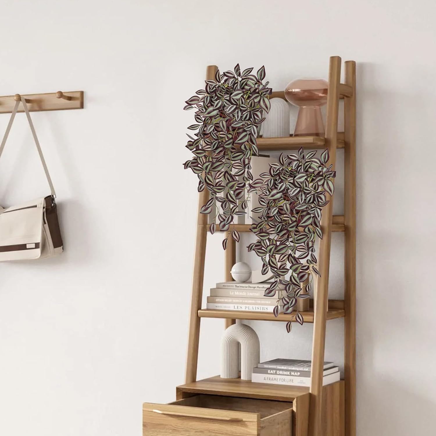 - 🌱Lifelike & Vibrant - Each order includes 5 pcs Wandering Jew fake hanging plants. The plants lengths are 22". They boast a lifelike appearance with vibrant colors and realistic details, adding a touch of greenery to your small space year-round.