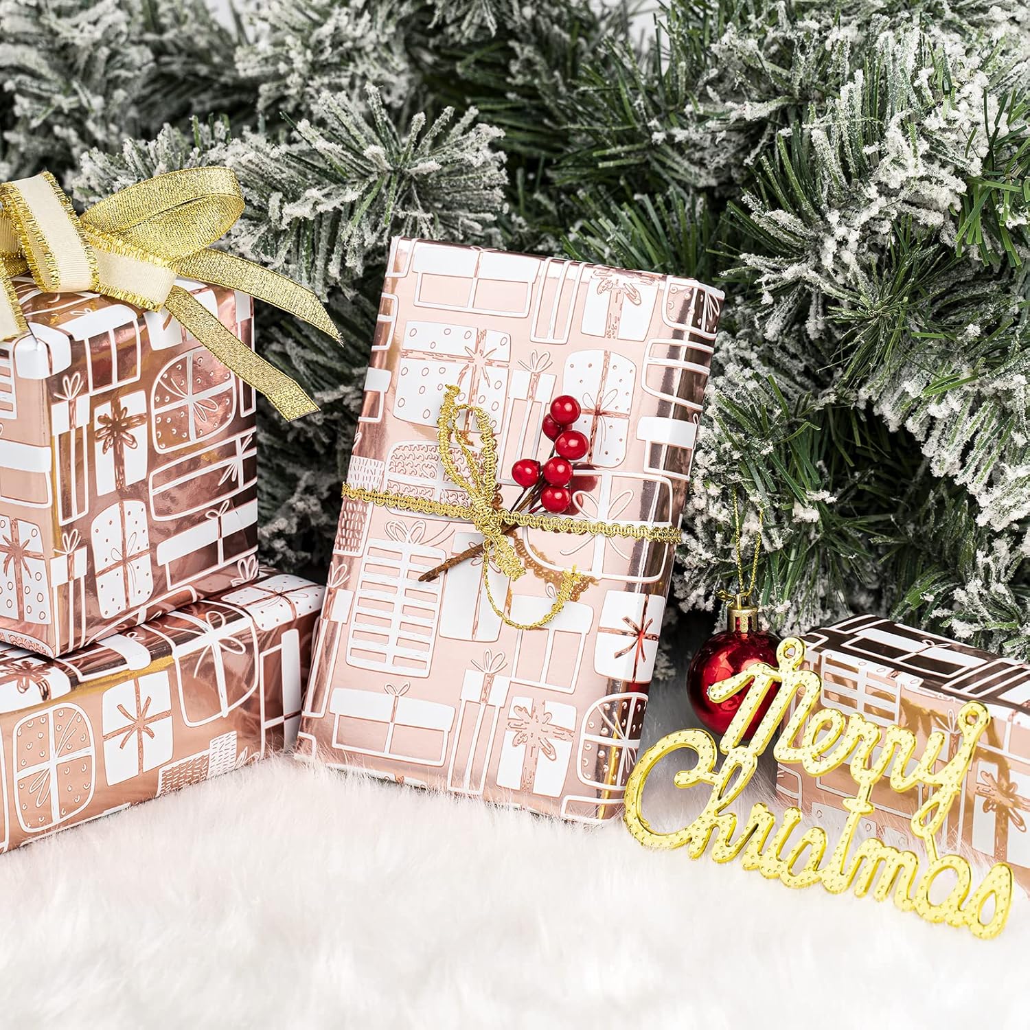 - METALLIC SHINE: Rose gold present design with metallic shine make sure every gift you give has an elegant touch by creating gift wrapping in this wonderful wrapping paper.