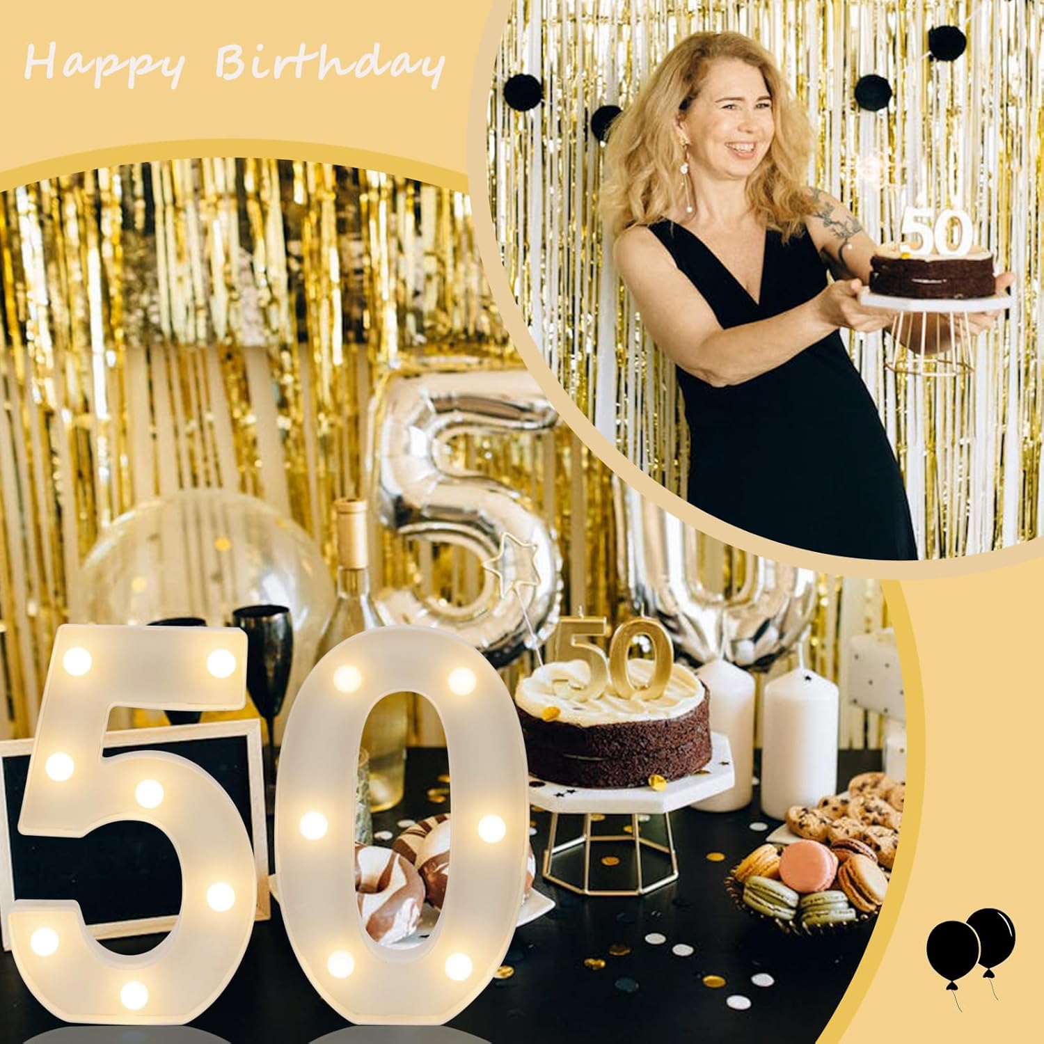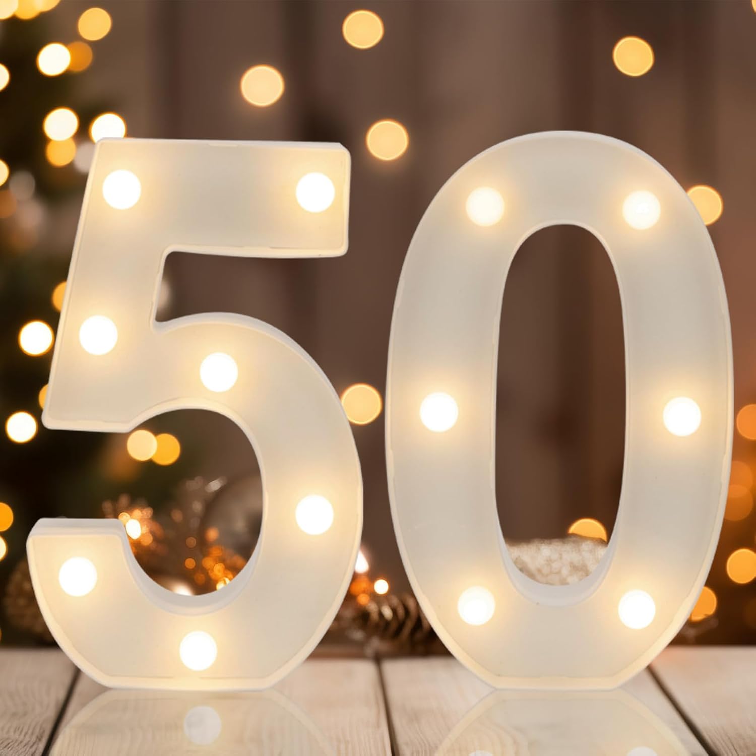 - 【Light Your Birthday Day】 Light up your birthday party with our light up letters spelling out ''50''.Light up the wonderful moments with LED number lights, warm color lights create a warm atmosphere, make your 50th birthday party more unforgettable and sparkling!