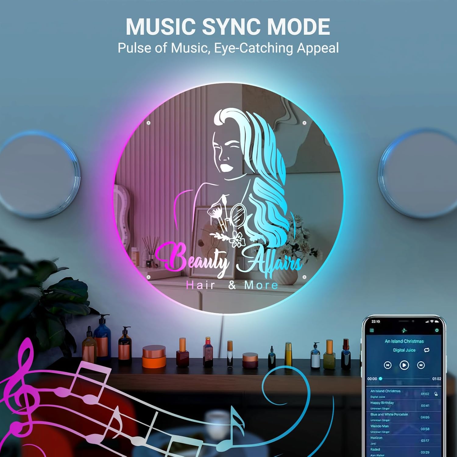 - 【EXCITING SYNCS WITH YOUR MUSIC】 With an internal high-sensitivity mic, REBRAN custom business logo mirror sign can react and move to the beat of your music for an immersive sound and light experience like no other.