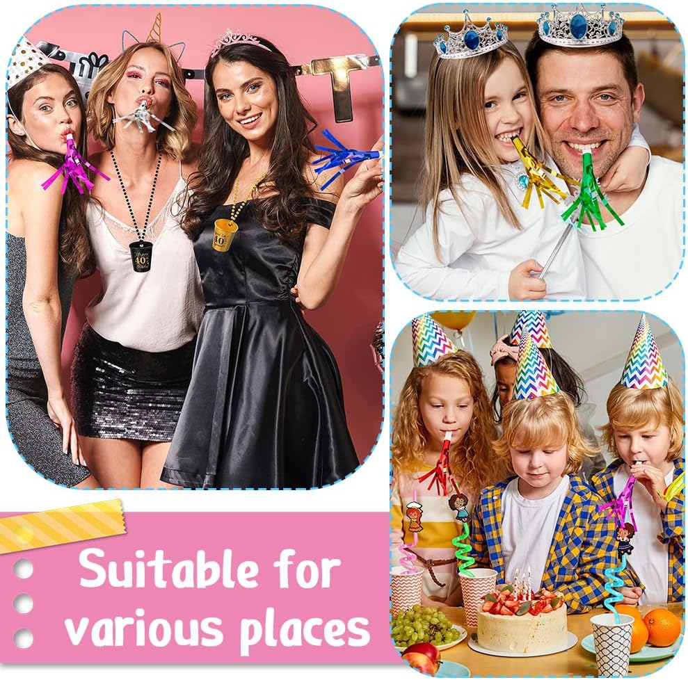 - 24 PCS Party Noise Makers: Our noise makers are the perfect addition to any celebration! With their vibrant colors and fun sounds, they are sure to liven up your sporting events, nye party, adult party, gold party, adult birthday party, 50th party, surprise party, new years party, funny party, Halloween party, and new years eve party. adult party favors noise makers for sporting events noise maker party blowers gold party favors party favors for adults party blowers for s party noise makers