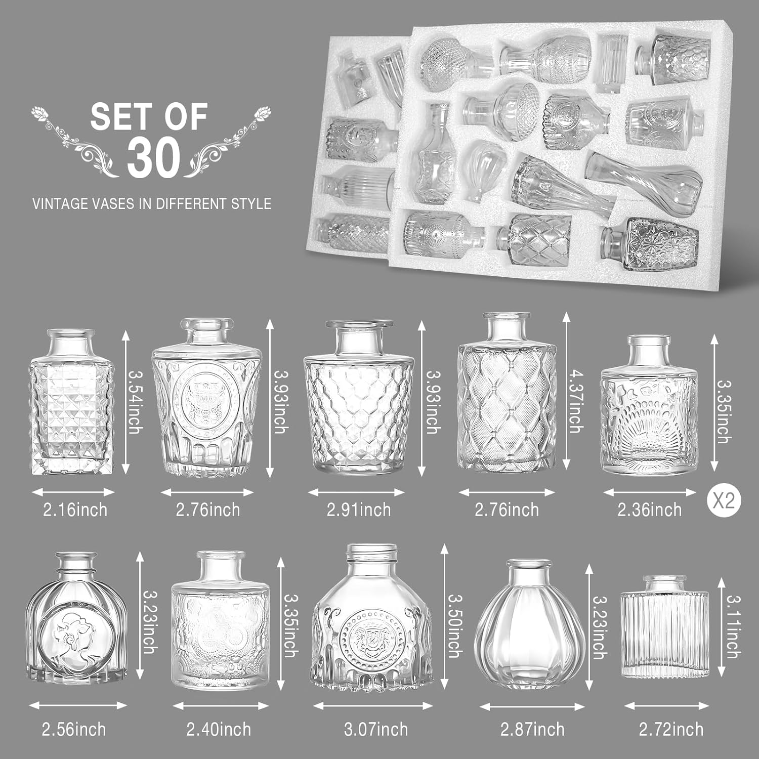 Glass Bud Vase Clear Bud Vases Set of 30 for Centerpieces, Vintage Glass Flower Vases in Bulk Suitable for Weddings, Parties or Home Decoration