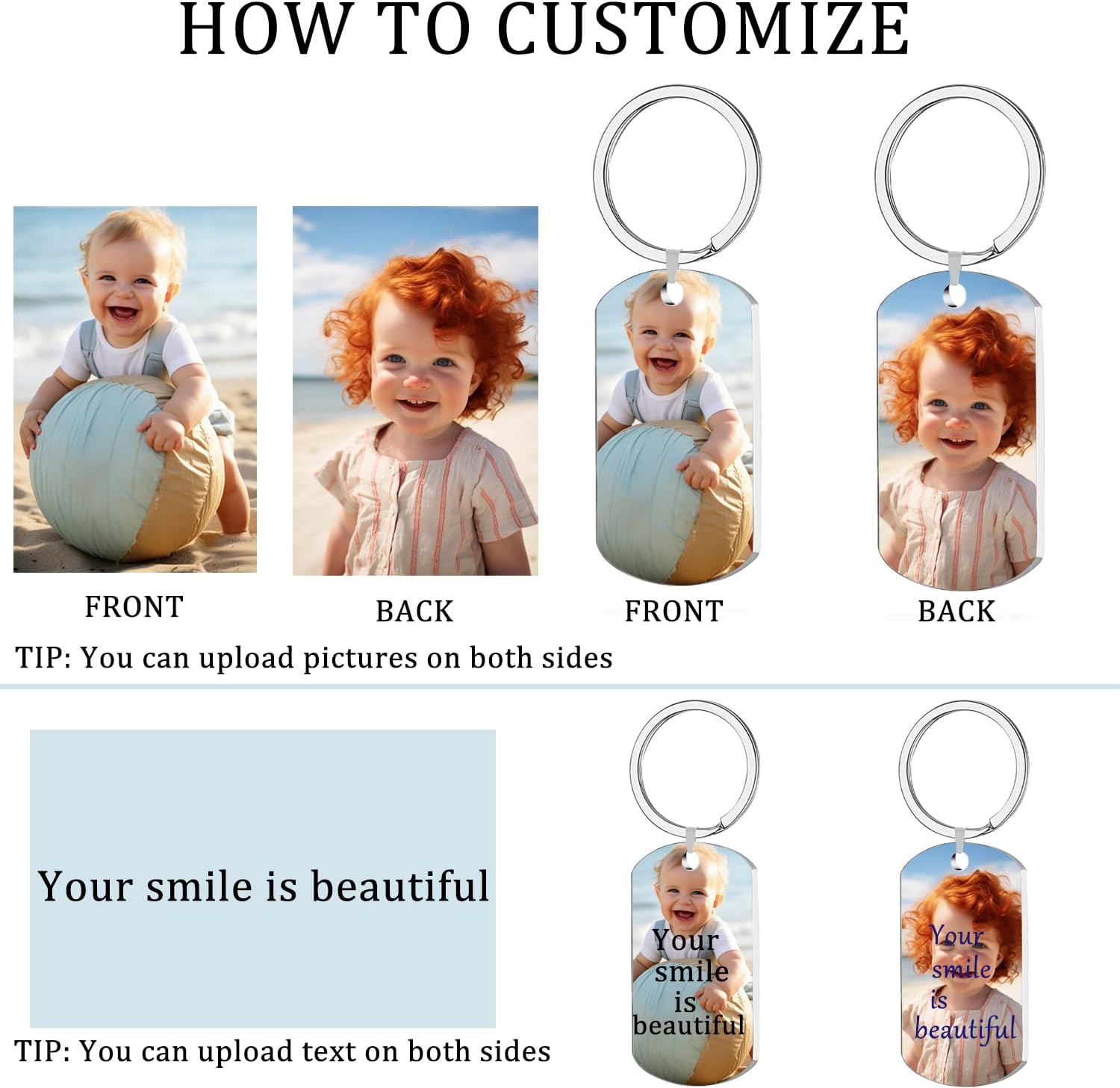 - 【High Quality Material】Custom keychains with pictures are made of stainless steel and engraved with advanced laser technology, Ensure your images and text are clear and easy to read for long-term use without wearing off or peeling off